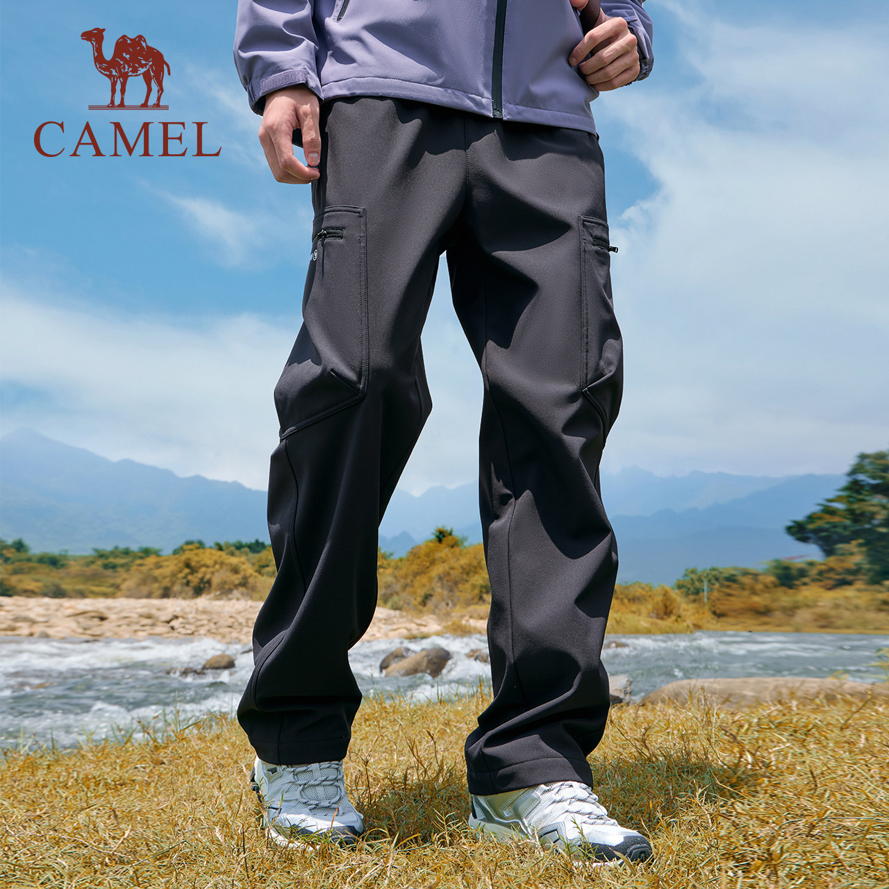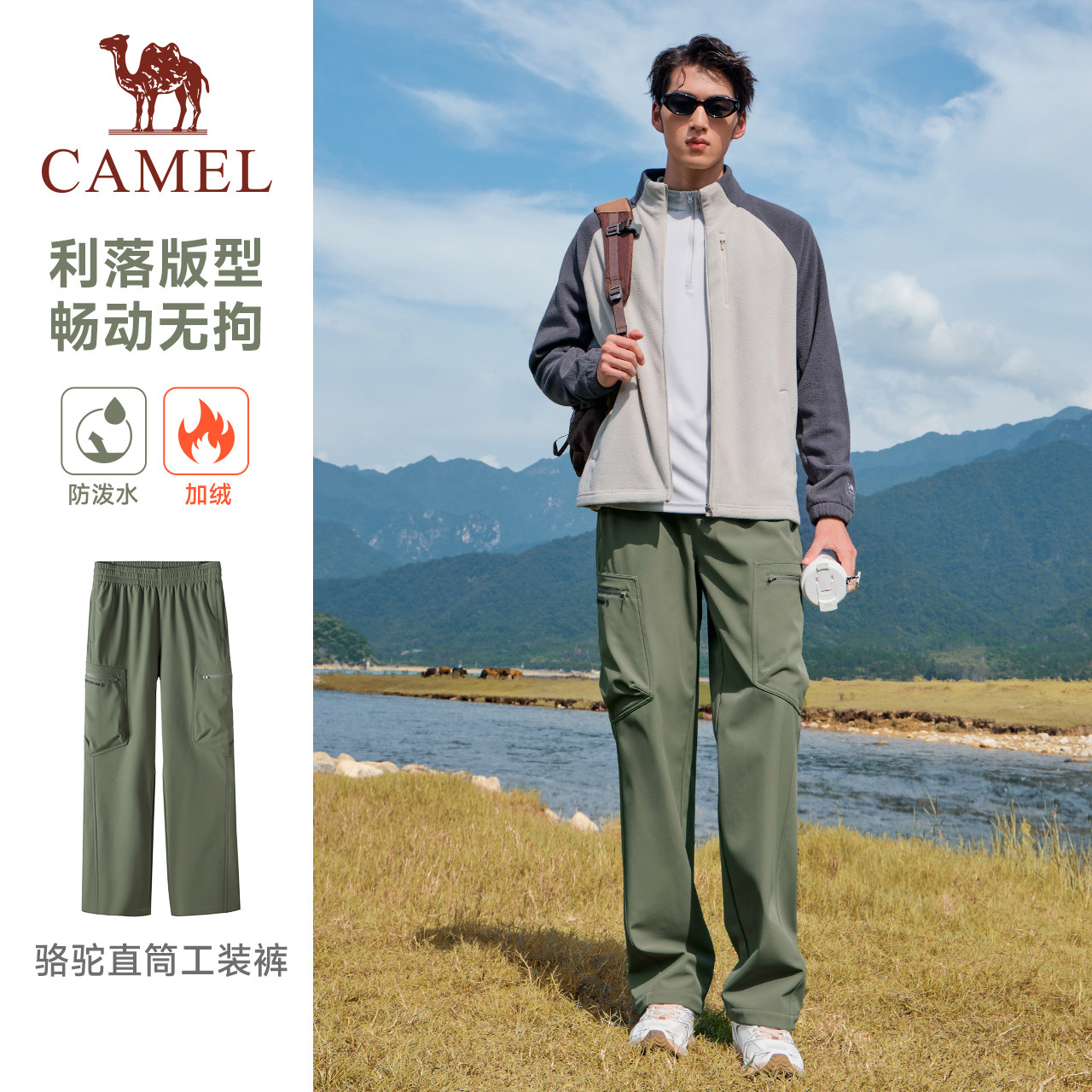 骆驼工装加绒裤男直筒伞兵裤宽松运动休闲户外防风防水保暖登山裤