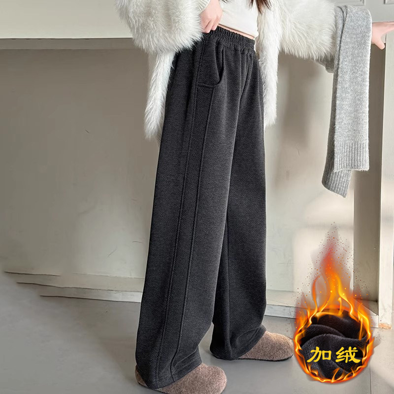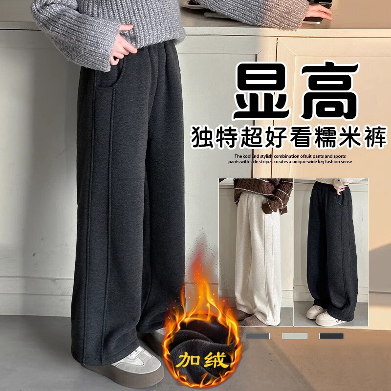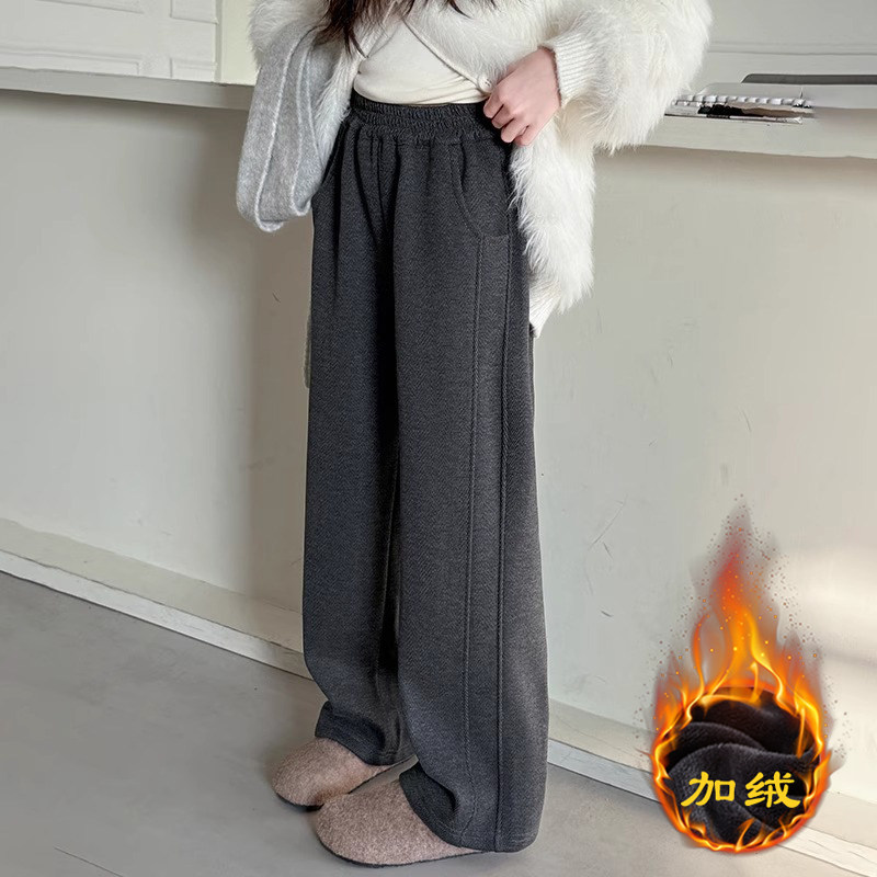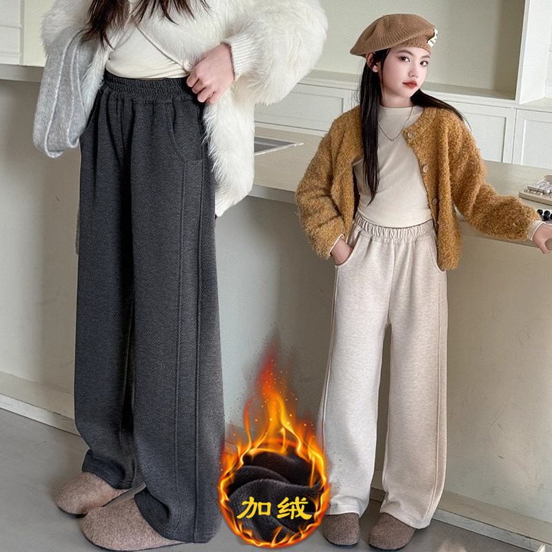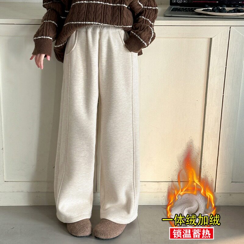 糯米裤子女童冬2025新款儿童一体绒运动裤女孩大童冬季加绒阔腿裤