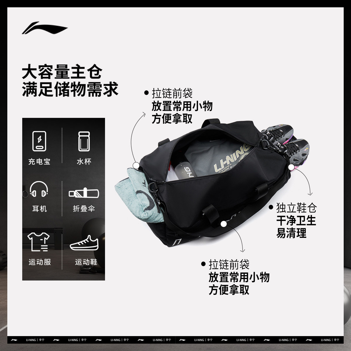 李宁男士干湿分离训练包2026新款短途旅行行李包健身运动桶包女