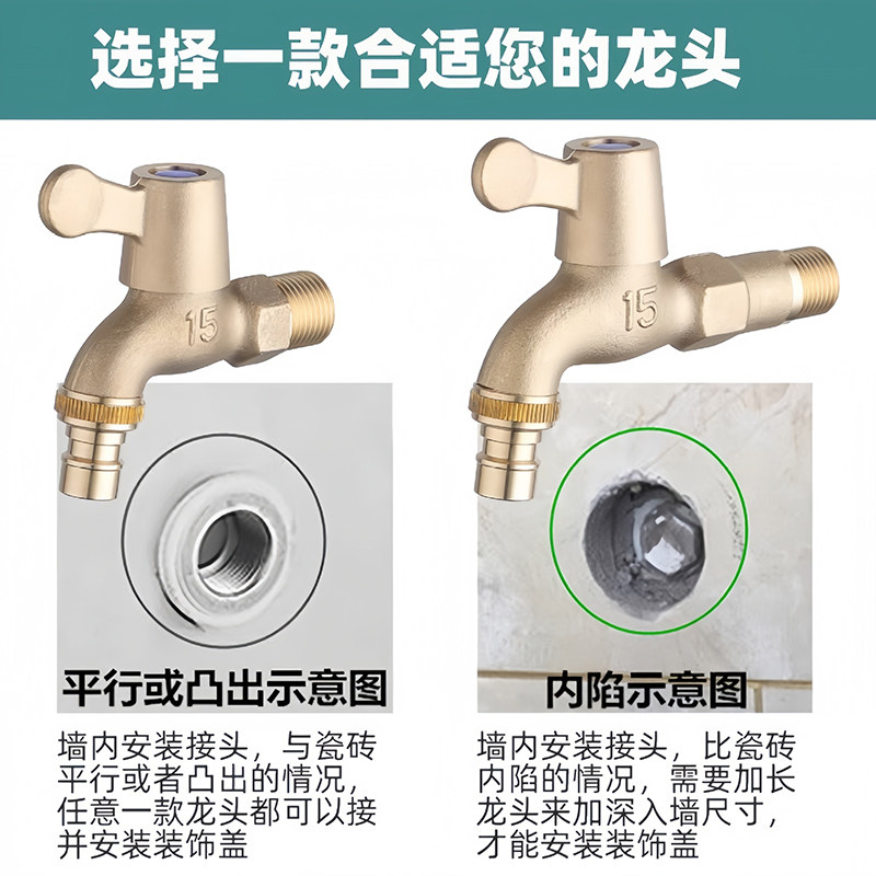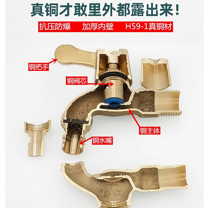 全铜洗衣机水龙头家用4分6分专用加长拖把池户外洗车黄铜水嘴奶嘴