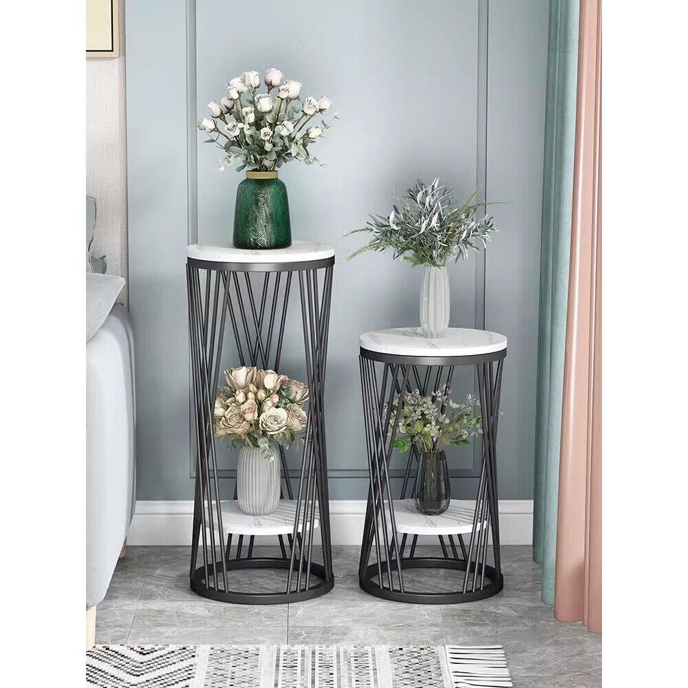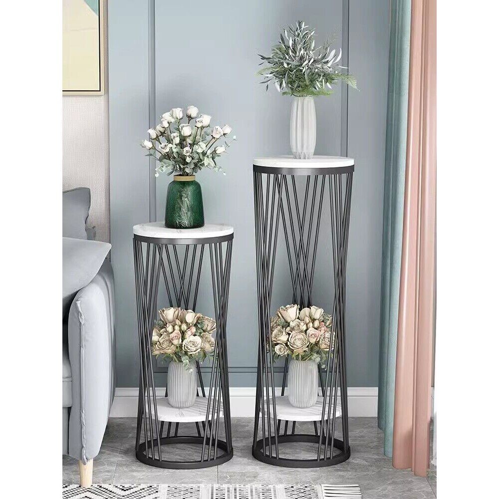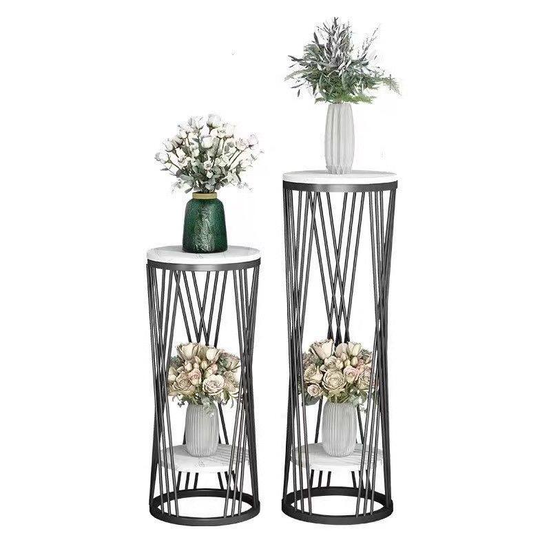 b北欧轻奢大理石落地式花架铁艺置物架绿萝室内多层阳台电视柜花