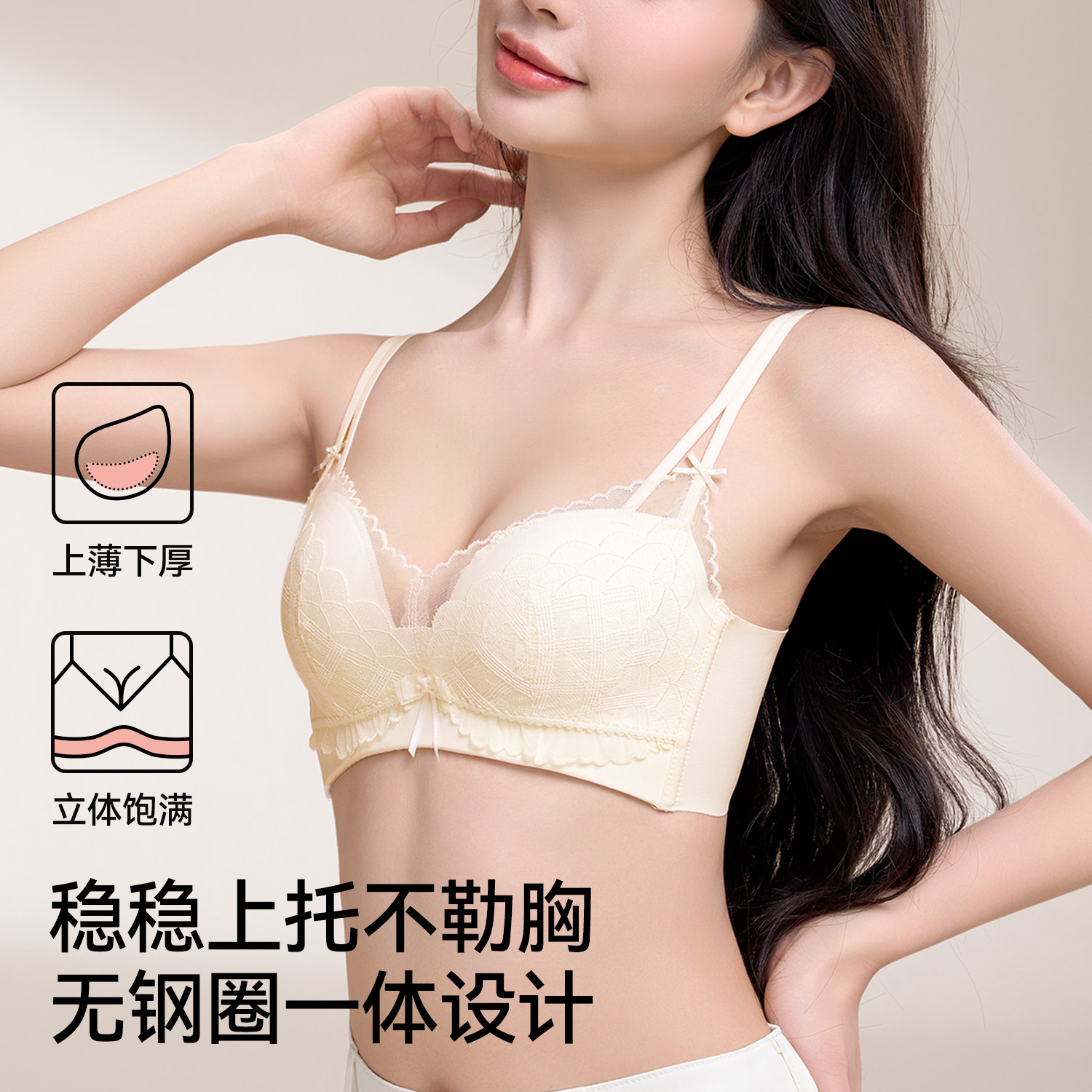 华熙玻尿酸菇娘家软支撑内衣大胸聚拢收副乳防下垂无痕粉底液文胸