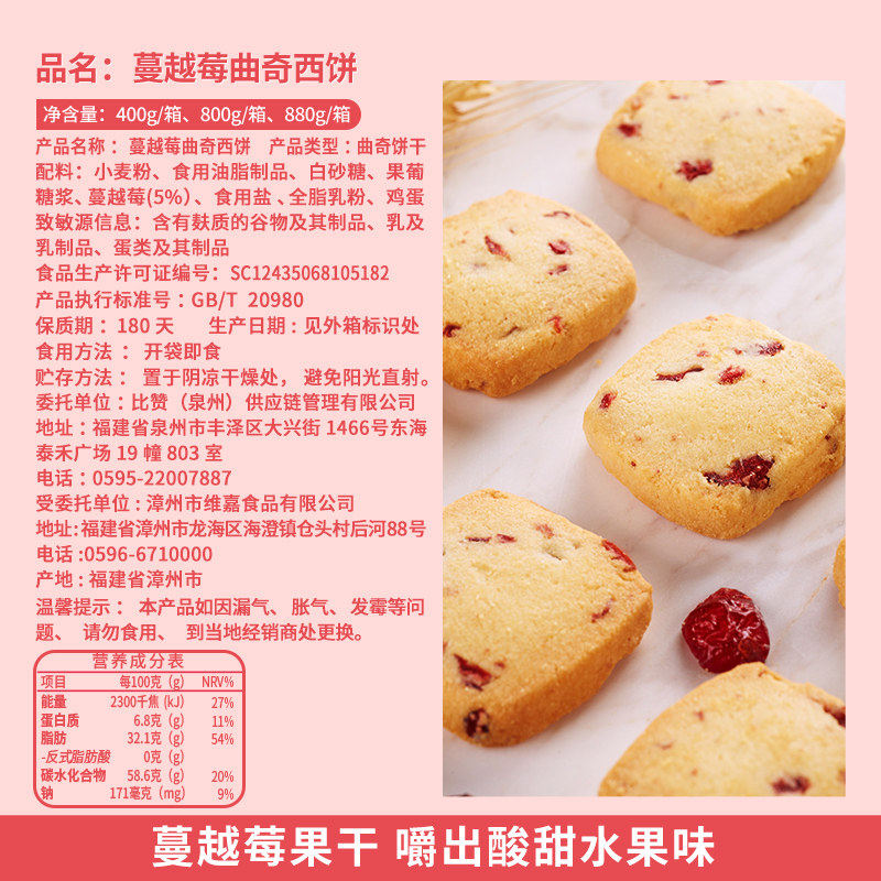 比比赞蔓越莓曲奇饼干网红办公室早餐解馋圣诞零食小吃休闲食品批