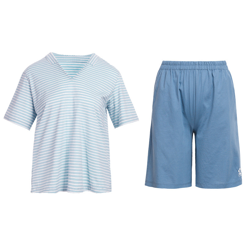 NoirTease奈黎诗全棉夏季女薄款纯棉短袖休闲睡衣家居服两件套装