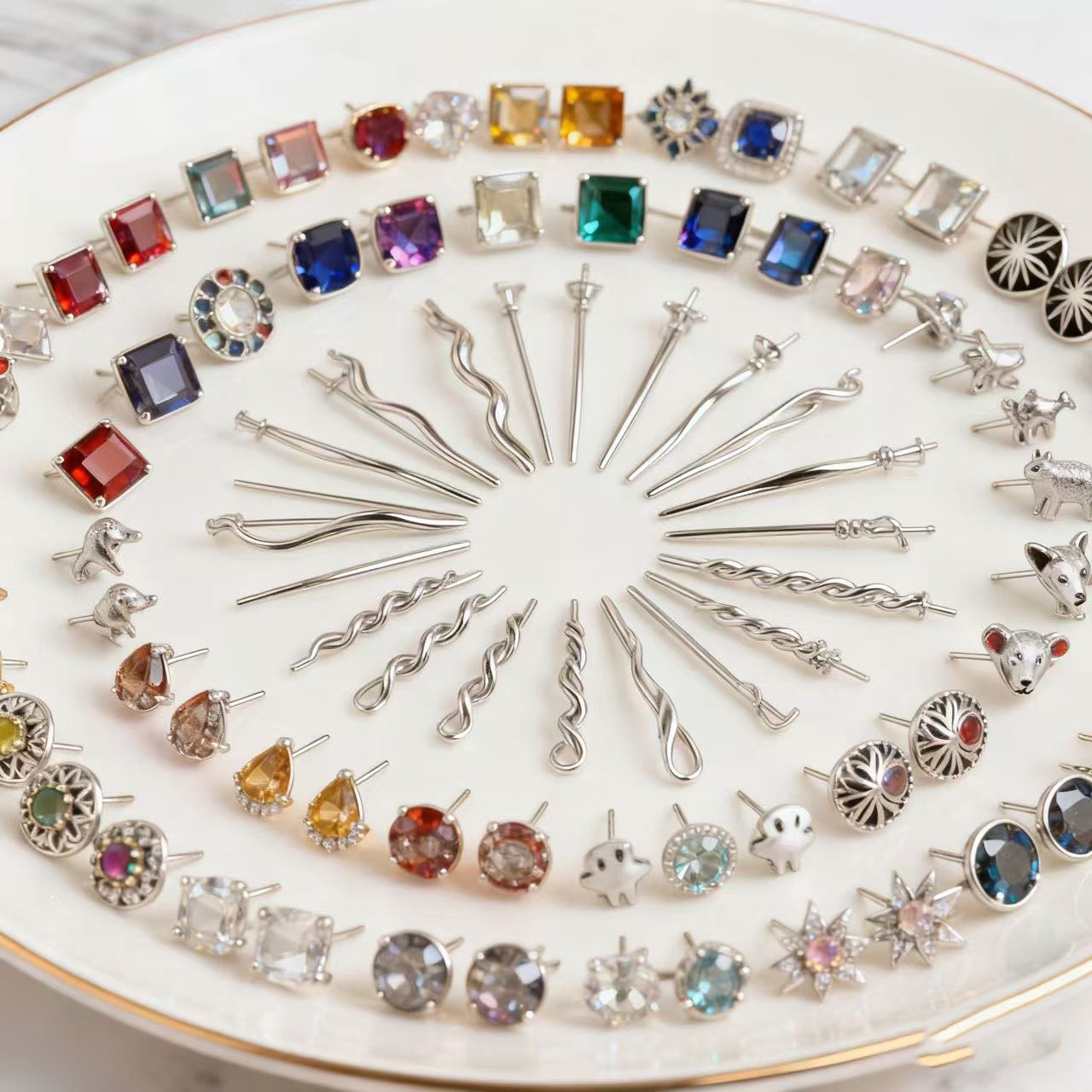 韩系爆款简约方糖珠珠耳钉轻奢小众百搭气质几何形耳环小香风耳饰