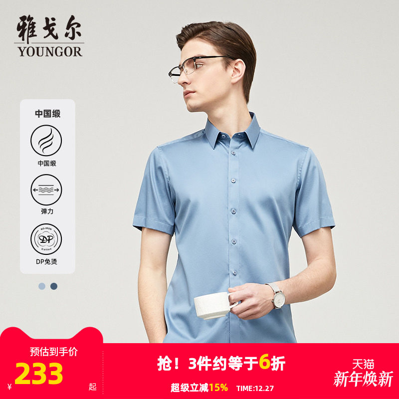 【中国缎衬衫】雅戈尔春夏新品商务休闲缎纹棉弹DP免烫短袖衬衫男