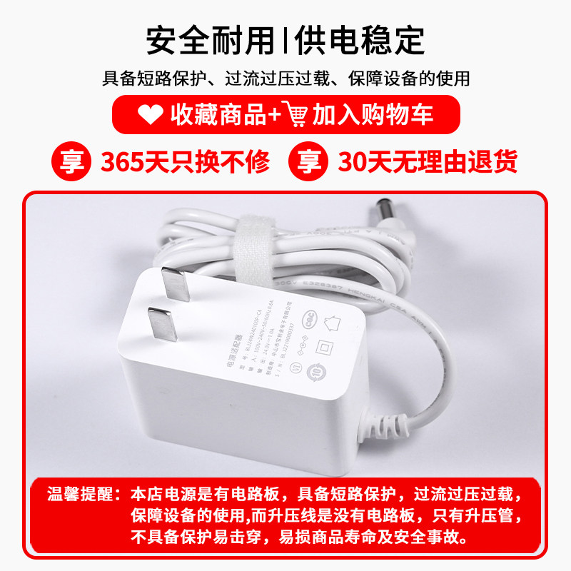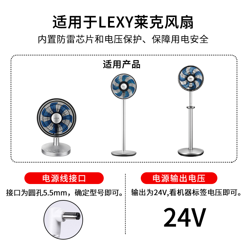 适用LEXY莱克DC24V1000MA电源适配器电风扇24V1A电源线充电器T-ZC76P带延长线共3米大圆线
