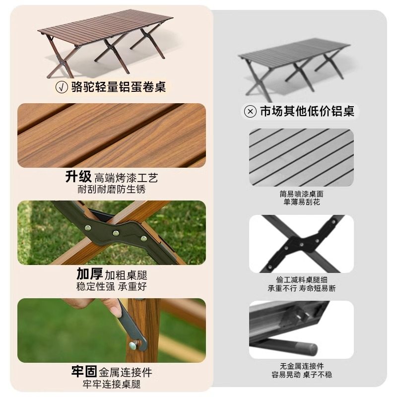 骆驼户外露营蛋卷桌户外桌椅野营装备用品铝合金桌子野餐折叠桌