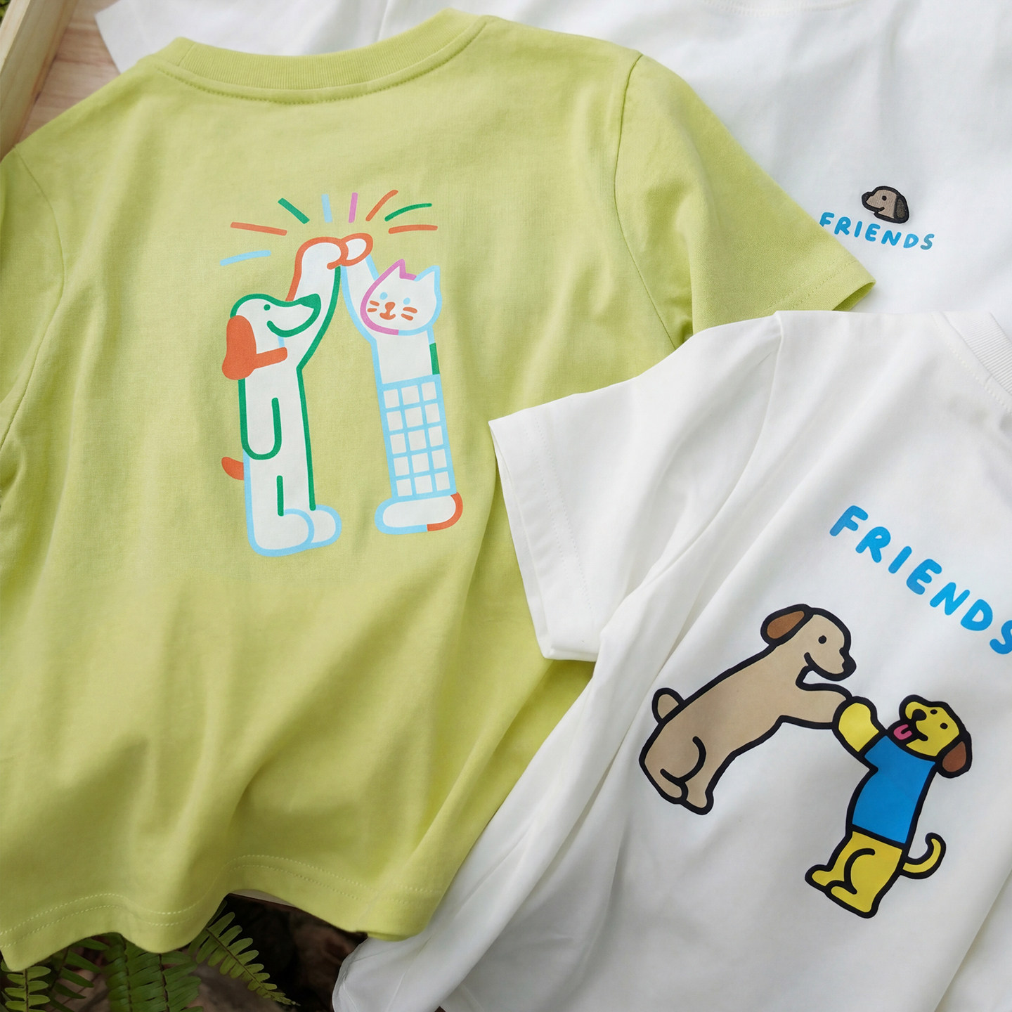 迷你巴拉巴拉男女童短袖T恤凉感抑菌可爱小狗一家三口亲子上衣夏