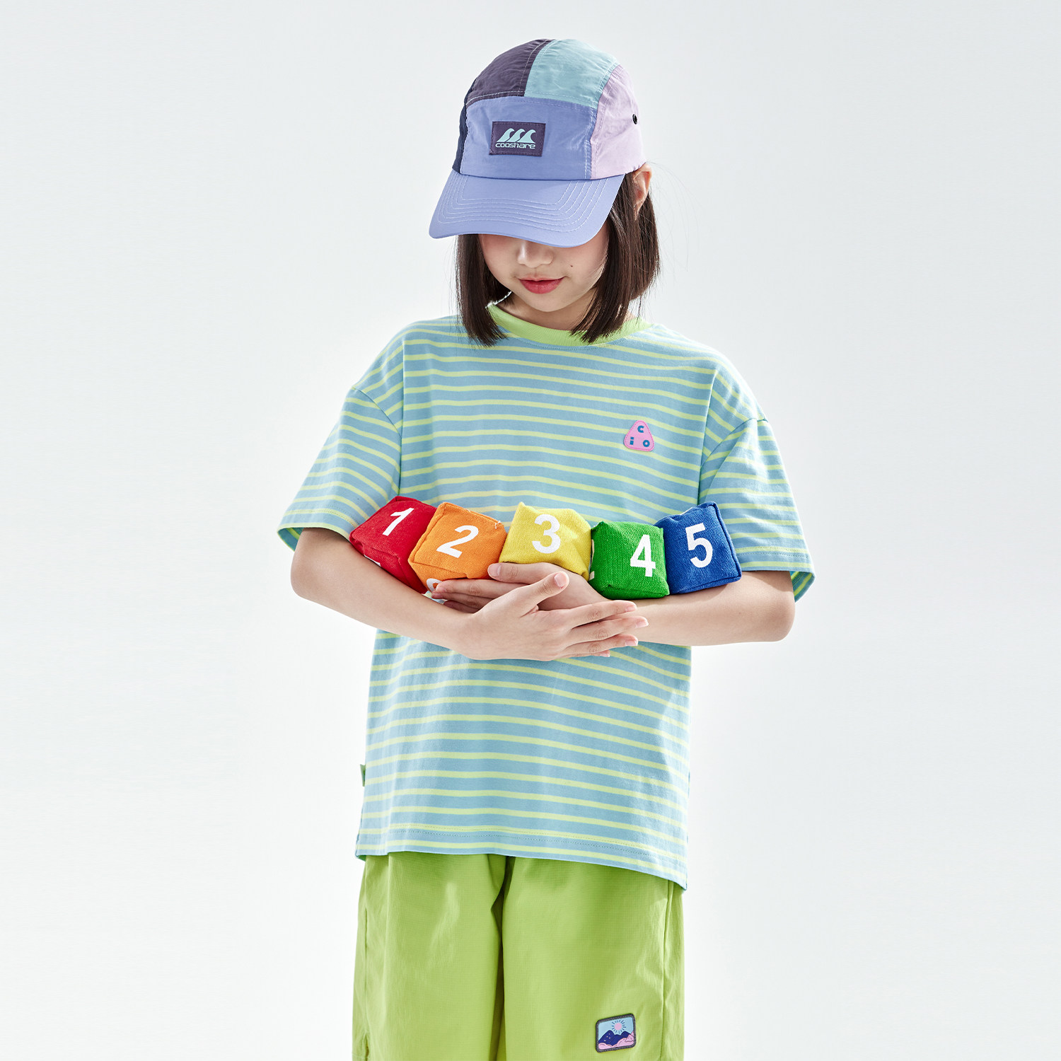 cicochild26年夏季新款亲子中大女童撞色条纹短袖T恤亲肤宽松上衣