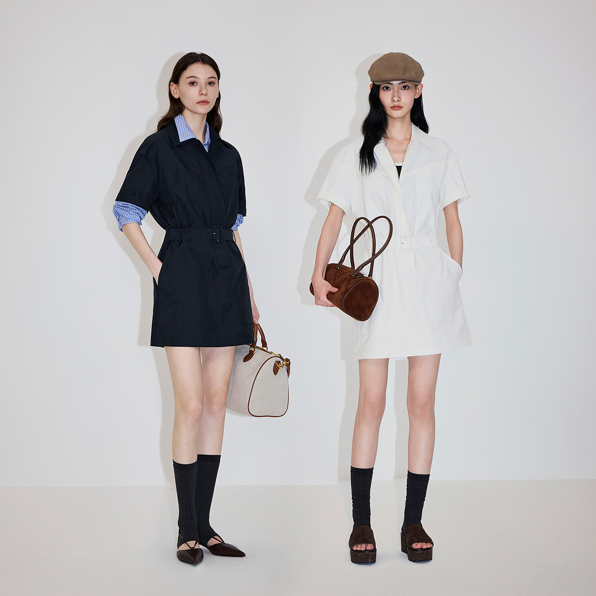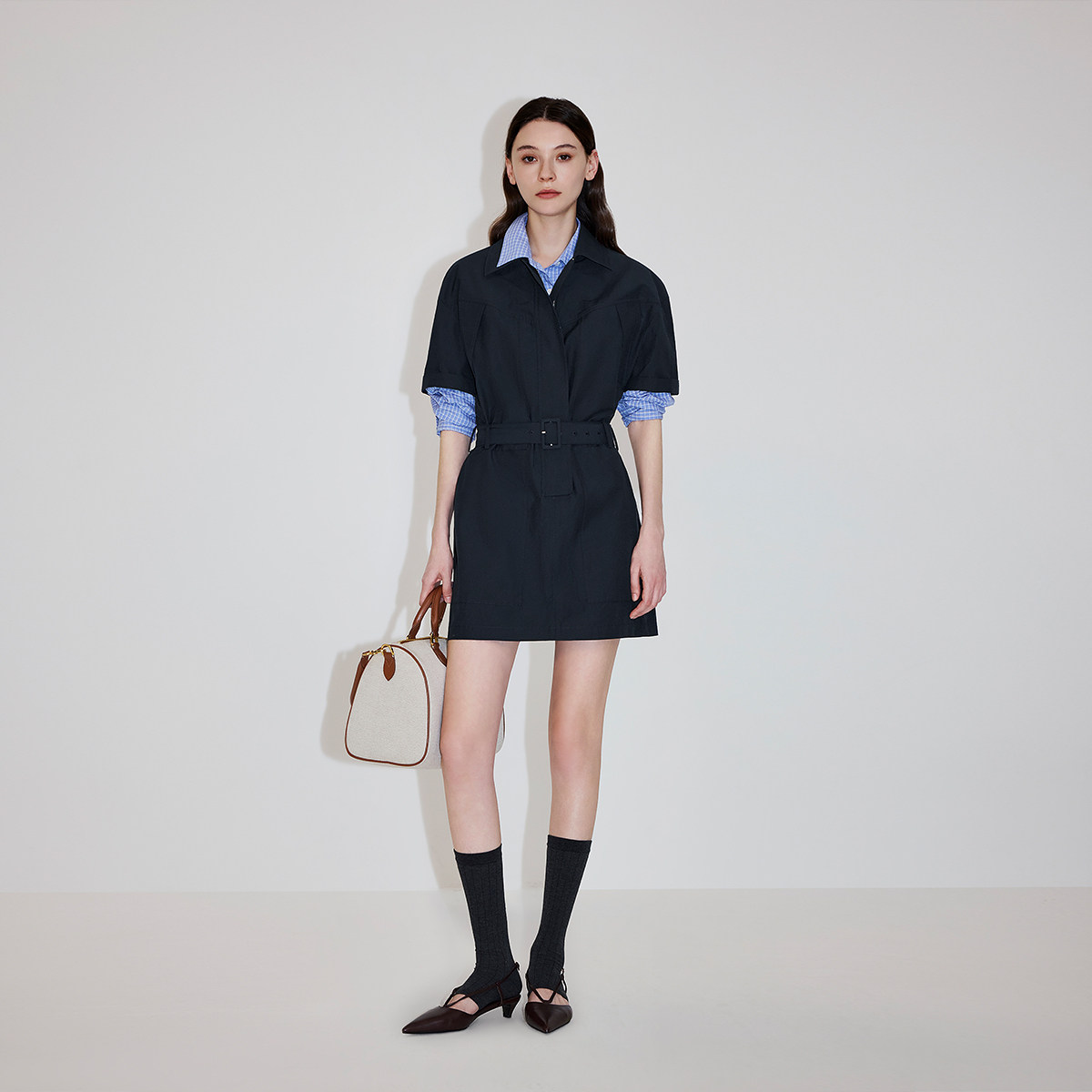 【新品】OCHIRLY欧时力 连衣裙2026春夏工装风短袖翻领休闲腰带