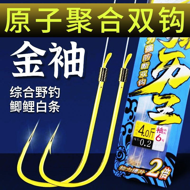 鱼钩绑好短子线双钩成品套装钓鱼袖钩金海夕金袖渔具野钓鲫鱼钩