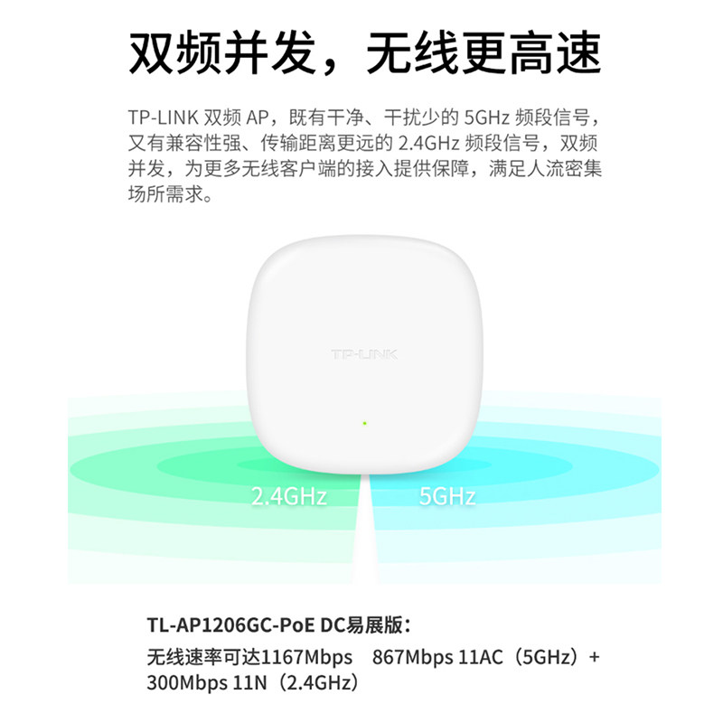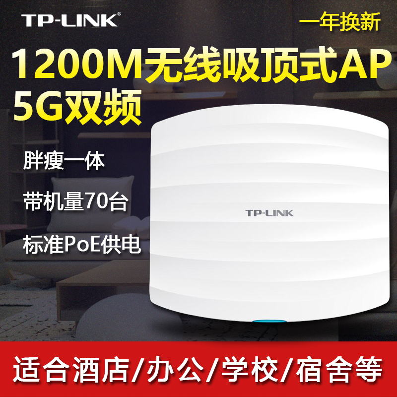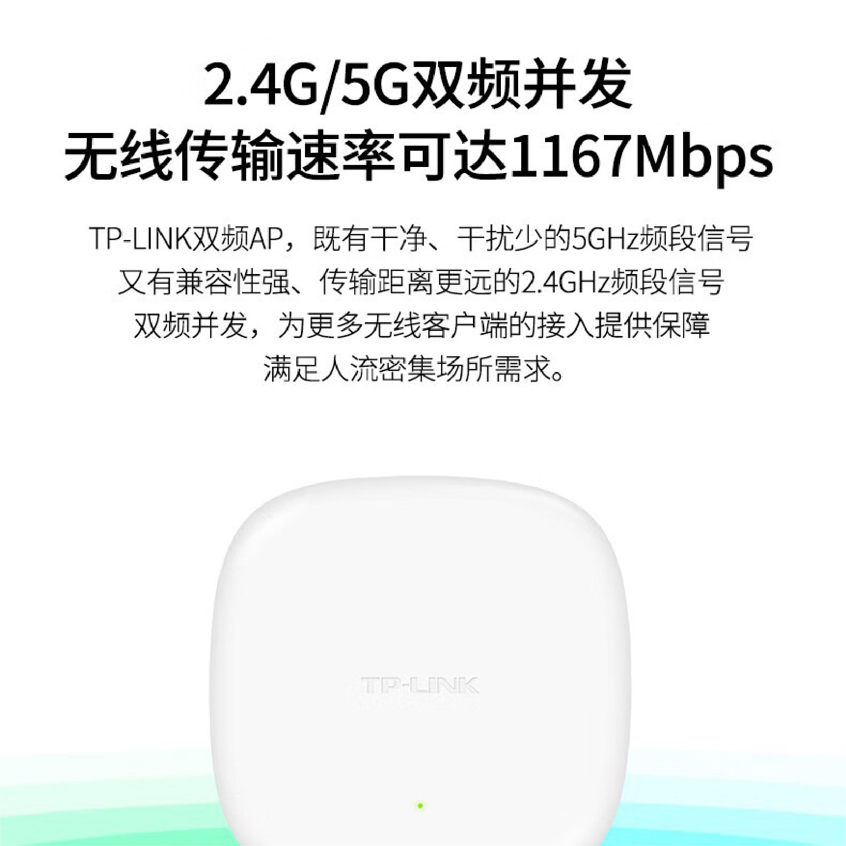 普联TP-LINK千兆无线吸顶式AP双频5G穿墙1200M企业别墅WiFi全屋覆盖TPLINK路由器POE供电TL-AP1206GC-POE/DC