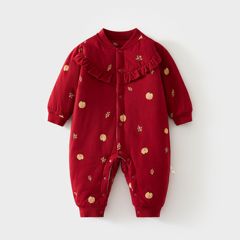 婧麒新生婴儿连体衣过年拜冬年服加厚保暖哈衣宝宝冬季喜庆爬爬服