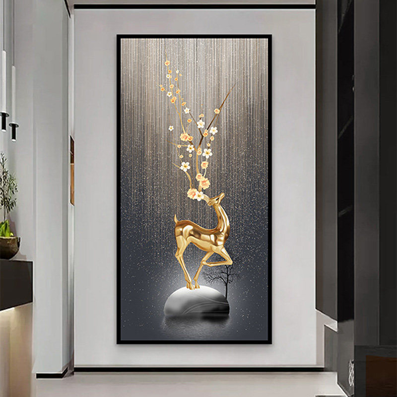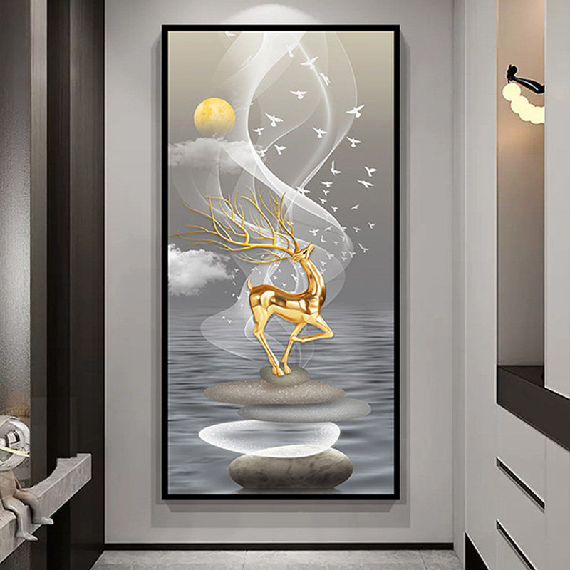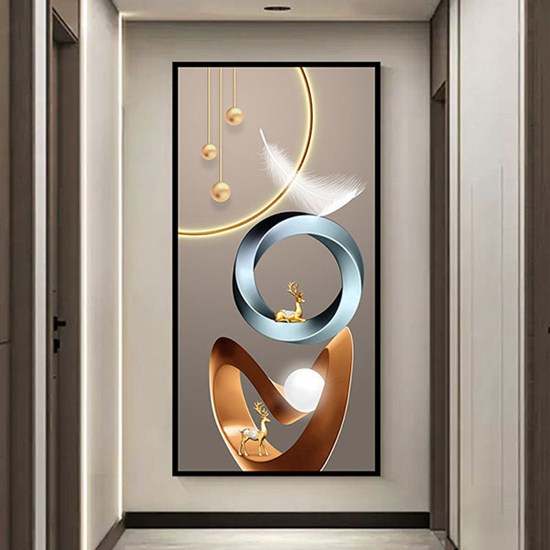 玄关装饰画现代轻奢3d立体墙贴客厅入户门过道墙画壁纸自粘的贴画