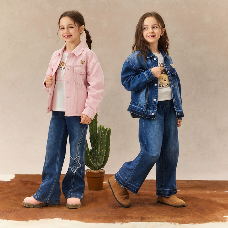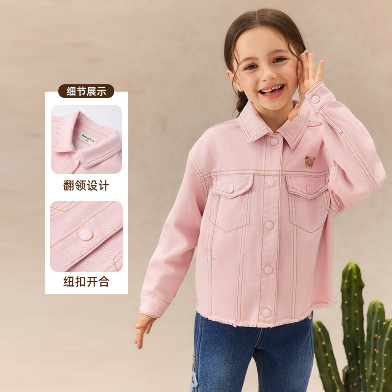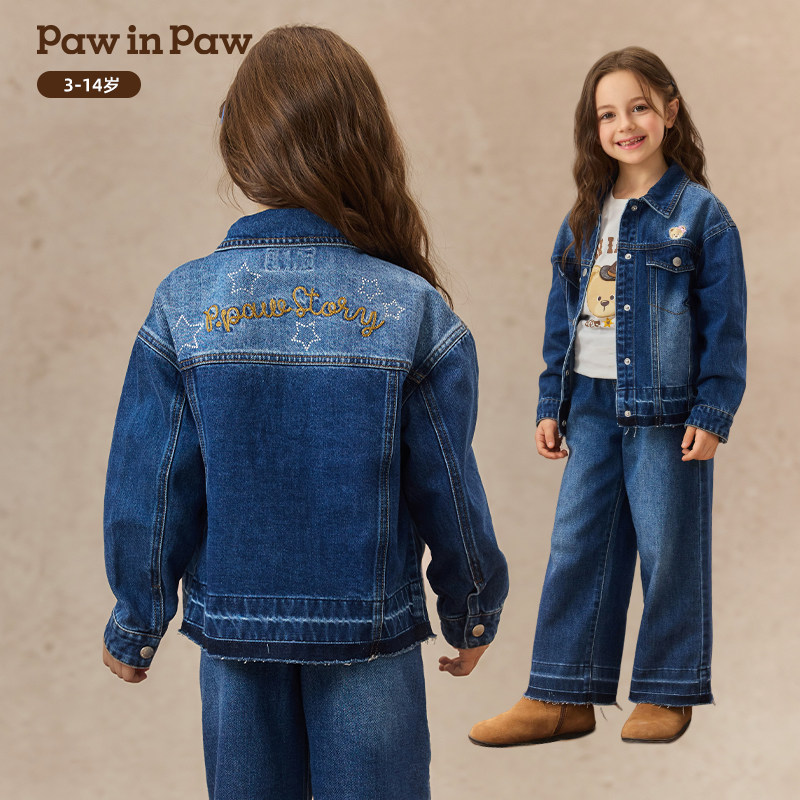 PawinPaw卡通小熊童装25年秋季新款女童翻领全棉牛仔外套宽松夹克