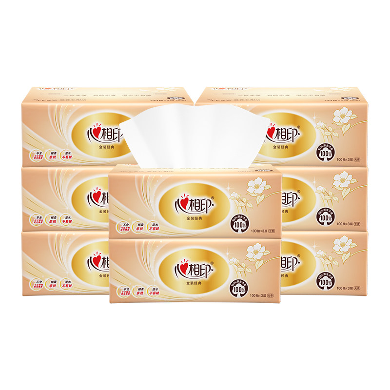 心相印抽纸巾经典金装100抽3层家用实惠装整箱卫生纸餐面巾纸24包