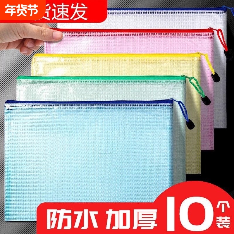50个网格文件袋透明塑料加厚拉链袋大容量A4试卷收纳袋文具学科袋惠档案资料袋文件夹办公用品批发防水证件