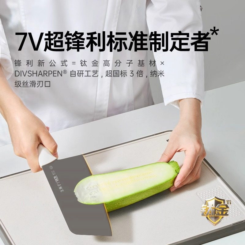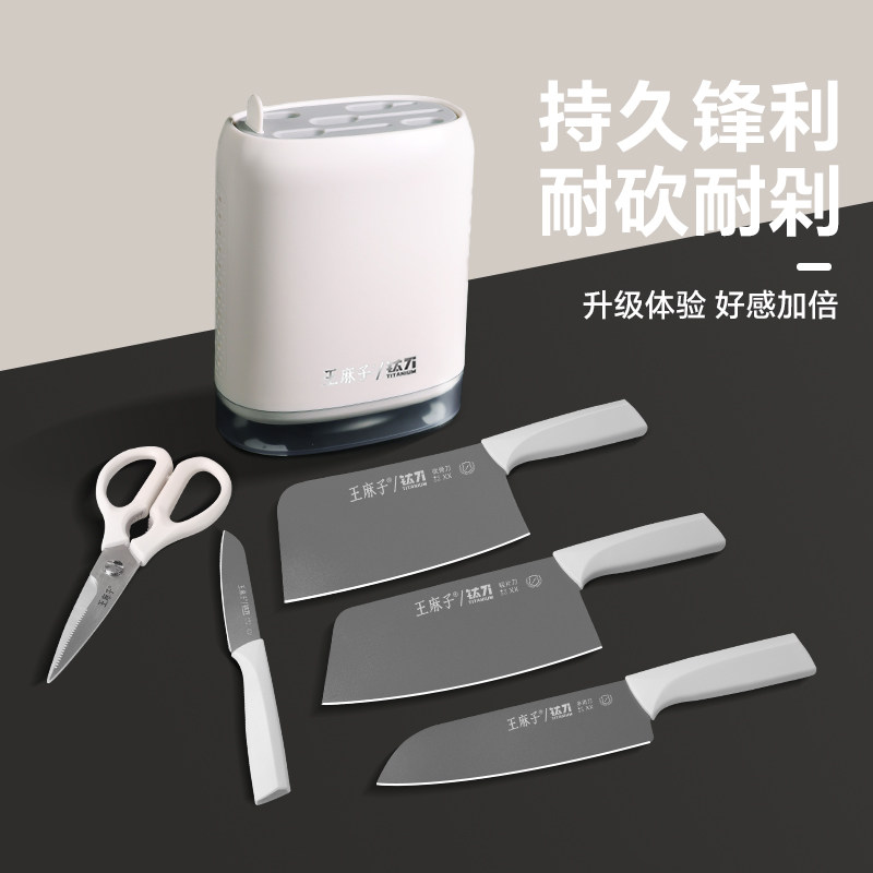 王麻子钛金刀具套装厨具全套组合菜刀菜板二合一厨房家用全套厨刀