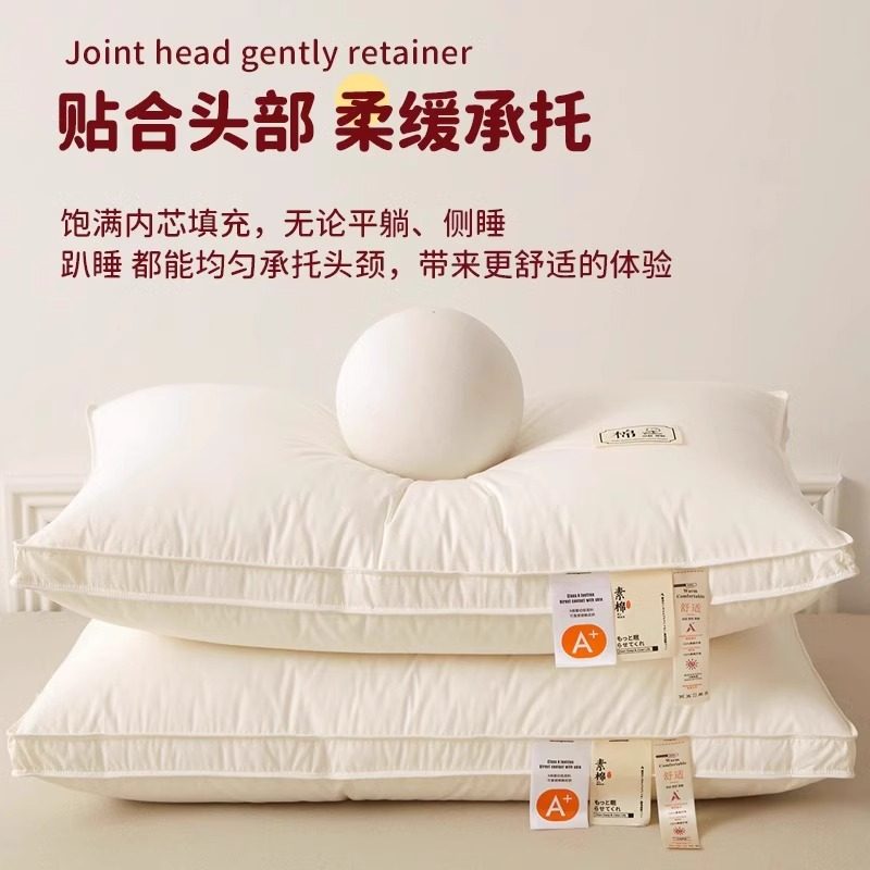 A类全棉枕头护颈椎枕芯助睡眠学生宿舍男酒店专用单人低家用一对