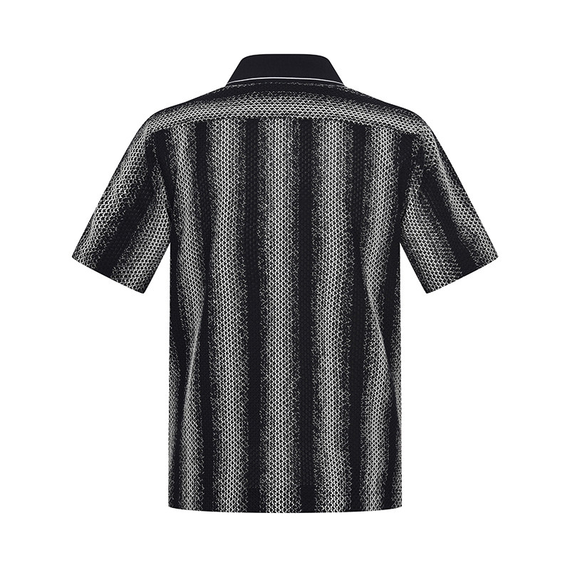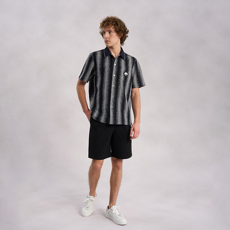 RARE威雅男装夏季新款藏青白色交织渐变挑孔古巴领短袖衬衫男