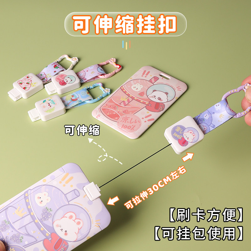 挂包伸缩扣学生公交卡套防丢可爱卡通创意校园卡刷卡方便带伸缩扣饭卡门禁卡挂书包挂背包易拉扣证件工牌7074