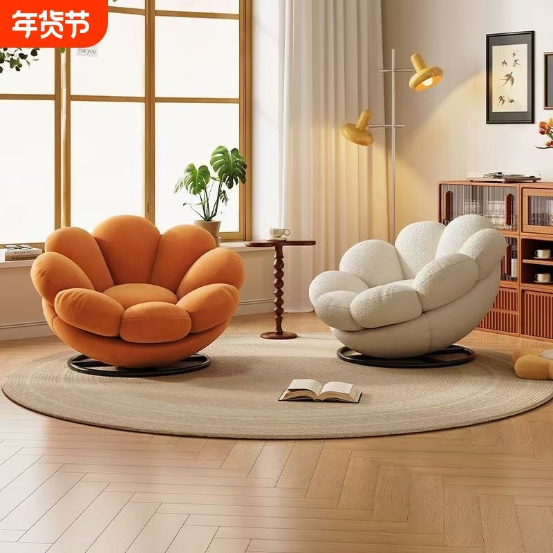 懒人沙发小户型单人沙发休闲躺椅旋转花瓣网红阳台久坐转椅奶油
