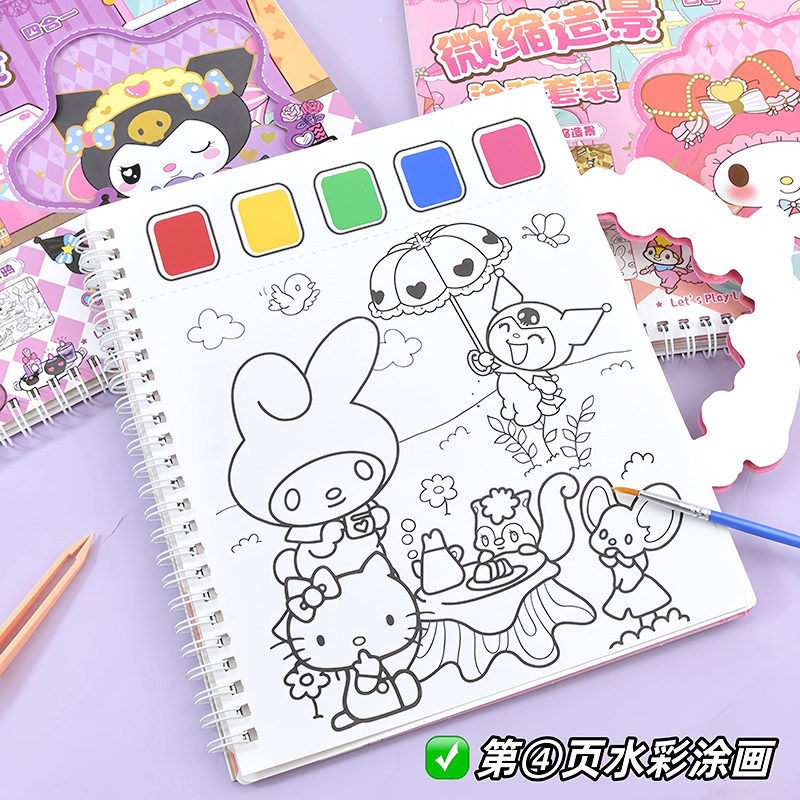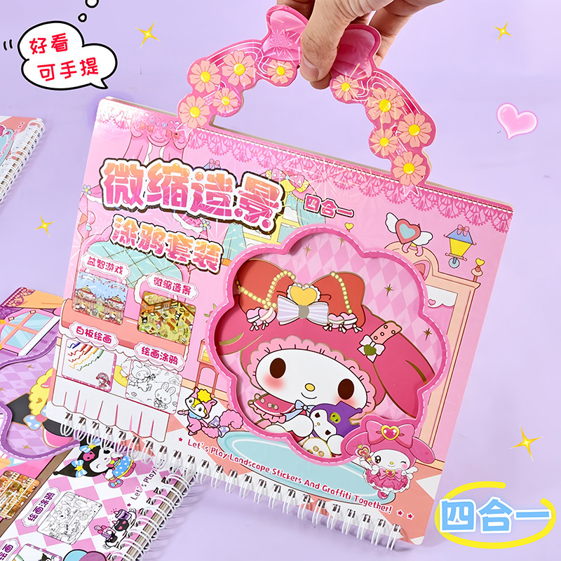 可爱卡通手提微缩造景涂鸦套装多种玩法四合一造景绘画益智游戏本