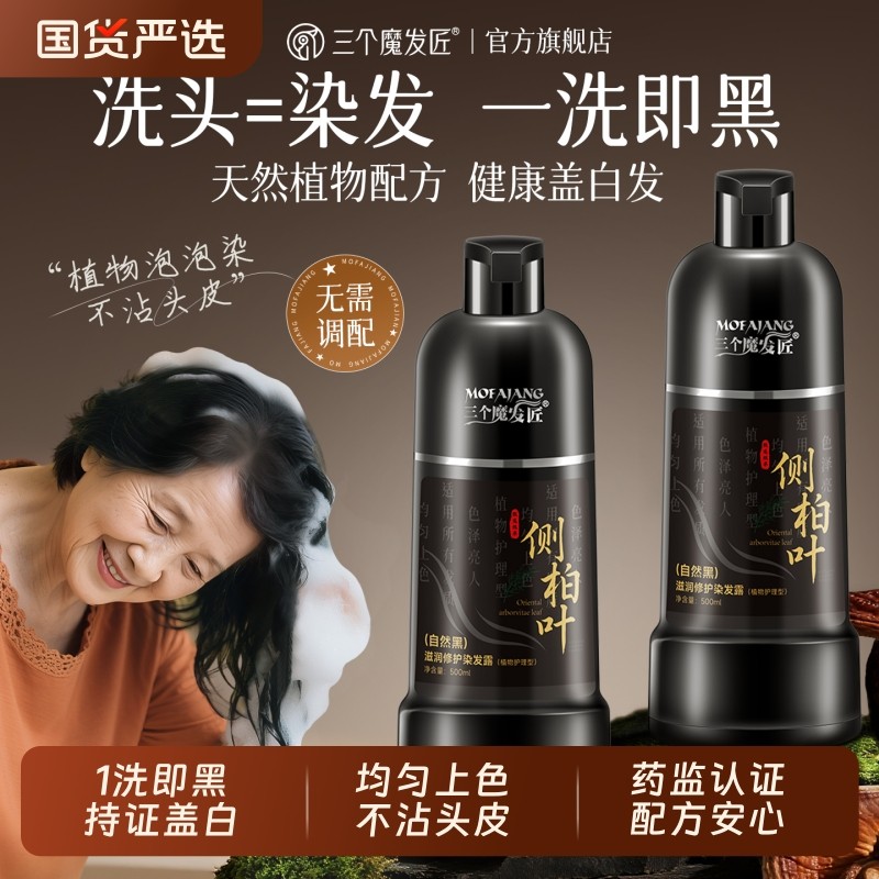 染发膏一洗黑天然无刺激一支黑泡泡染发剂植物纯官方旗舰店正品牌