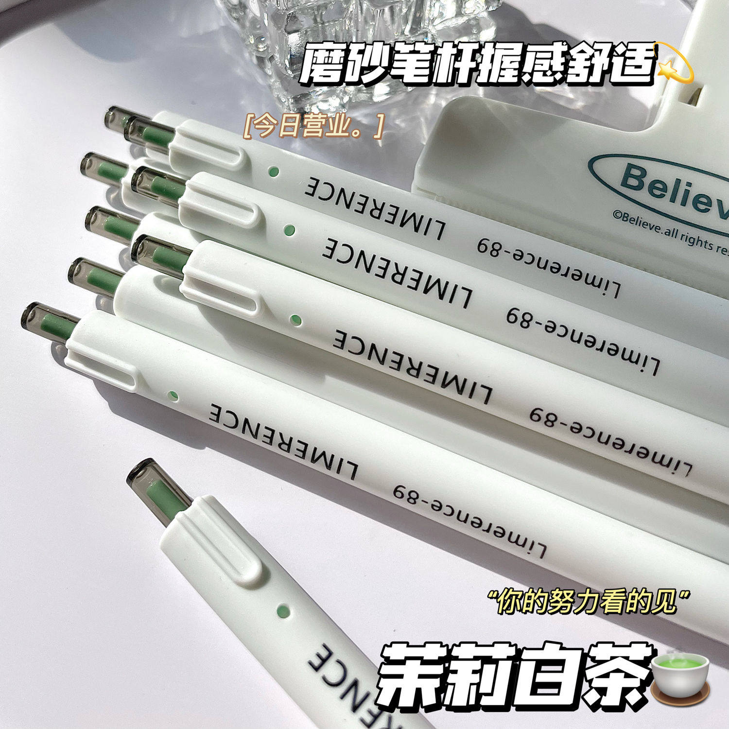茉莉白茶刷题小白笔ins简约高颜值ST头速干顺滑学生用按动中性笔小红书同款黑色按压式刷题笔水笔签字圆珠笔