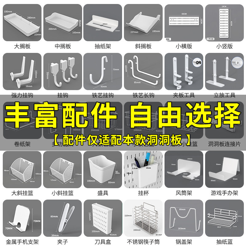 洞洞板配件桌面书桌挂式收纳置物架长孔通用适宜家用厨房搁板挂钩