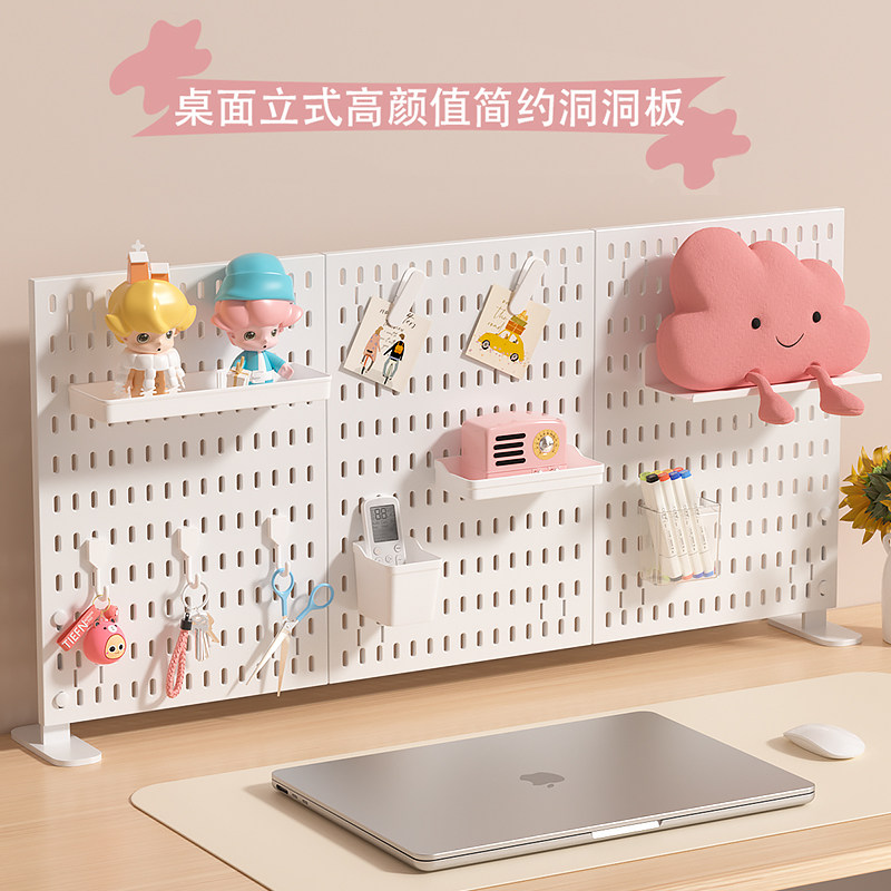 桌面洞洞板立式免打孔安装家用书桌宿舍课桌收纳置物架夹式配件