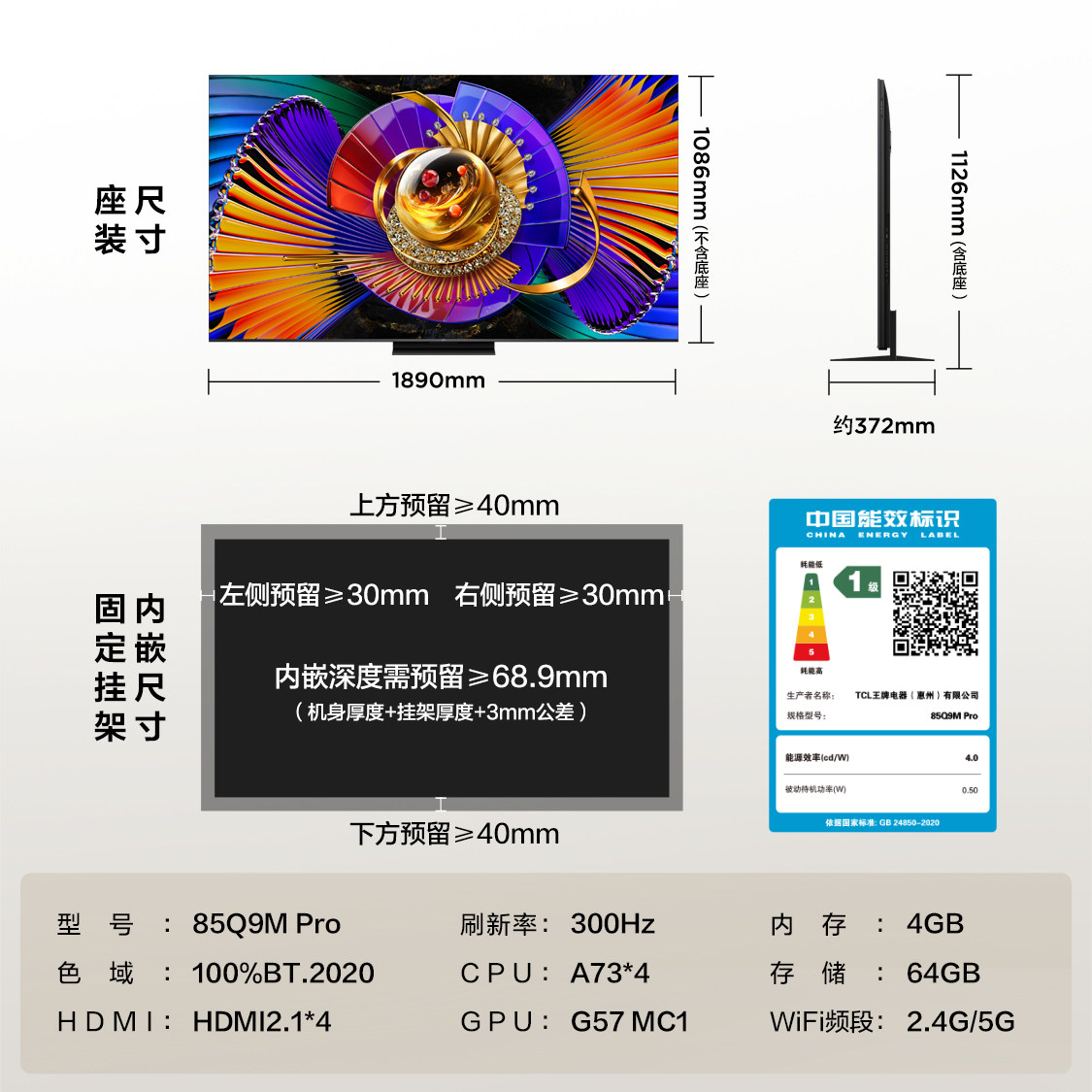 TCL电视 85Q9M Pro 85英寸 SQD-Mini LED 100%全局高色域