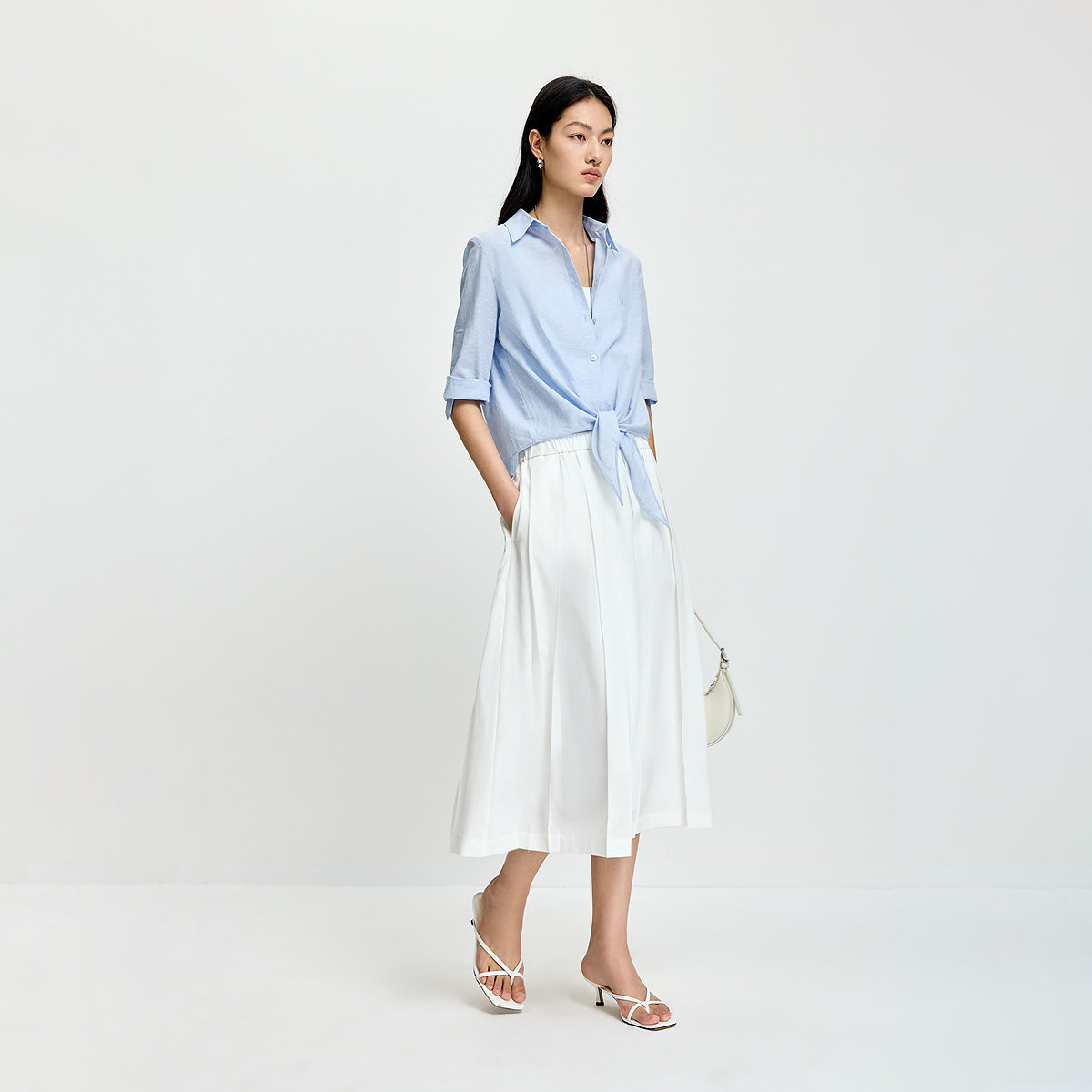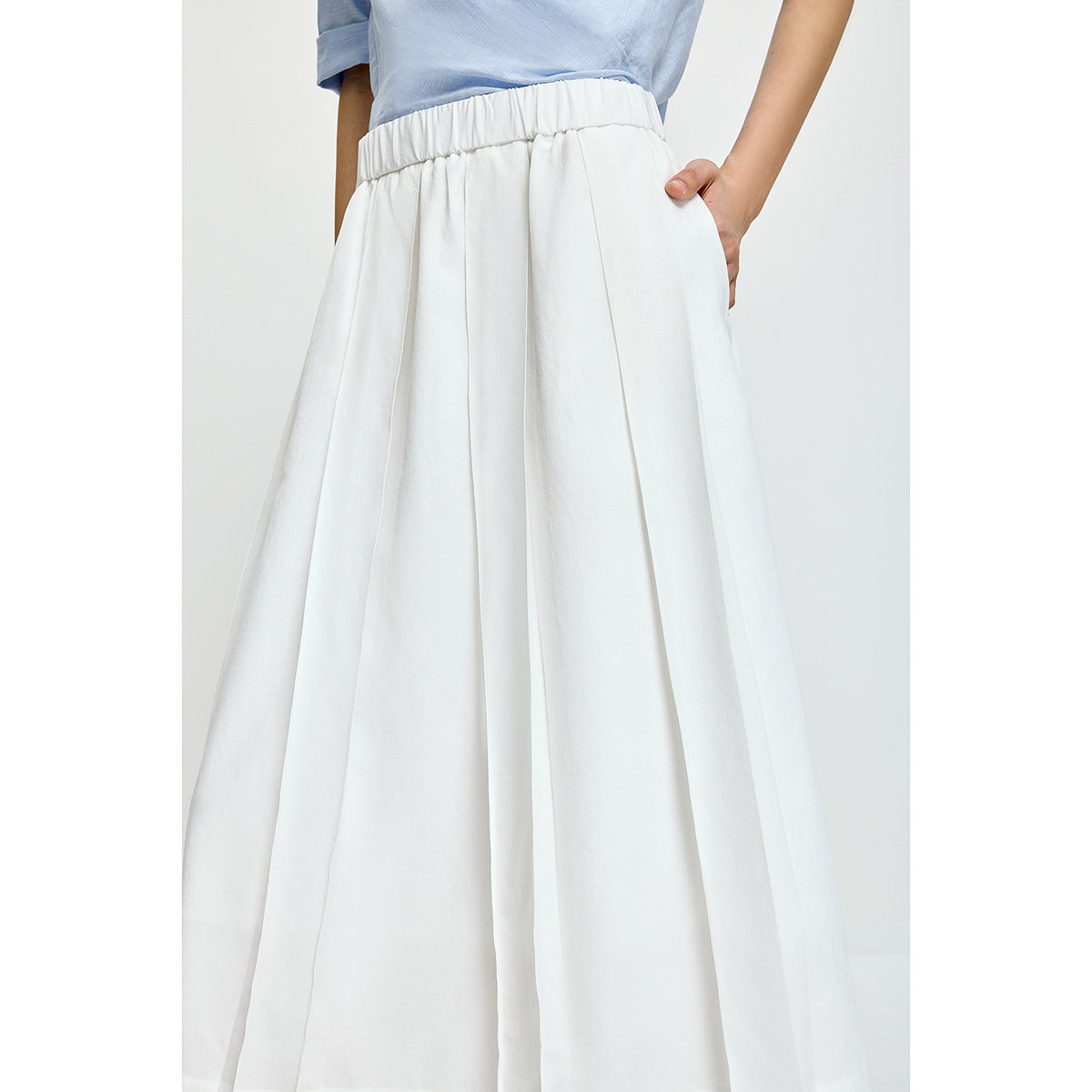 LILY2026夏新款简约气质宽松休闲通勤百搭白色A字半身裙百褶裙女