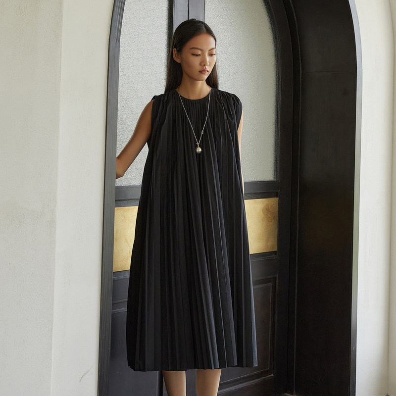 JNBY/江南布衣夏季女装连衣裙A字通勤无袖风琴百褶裙5O5G14450