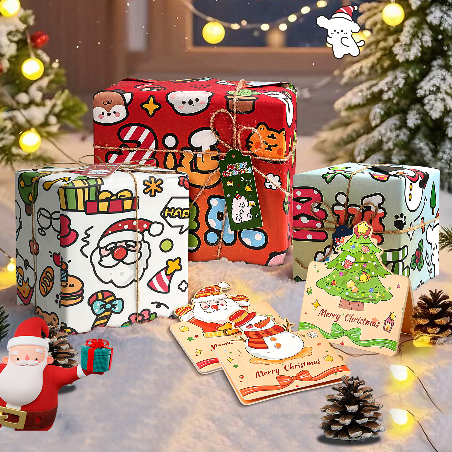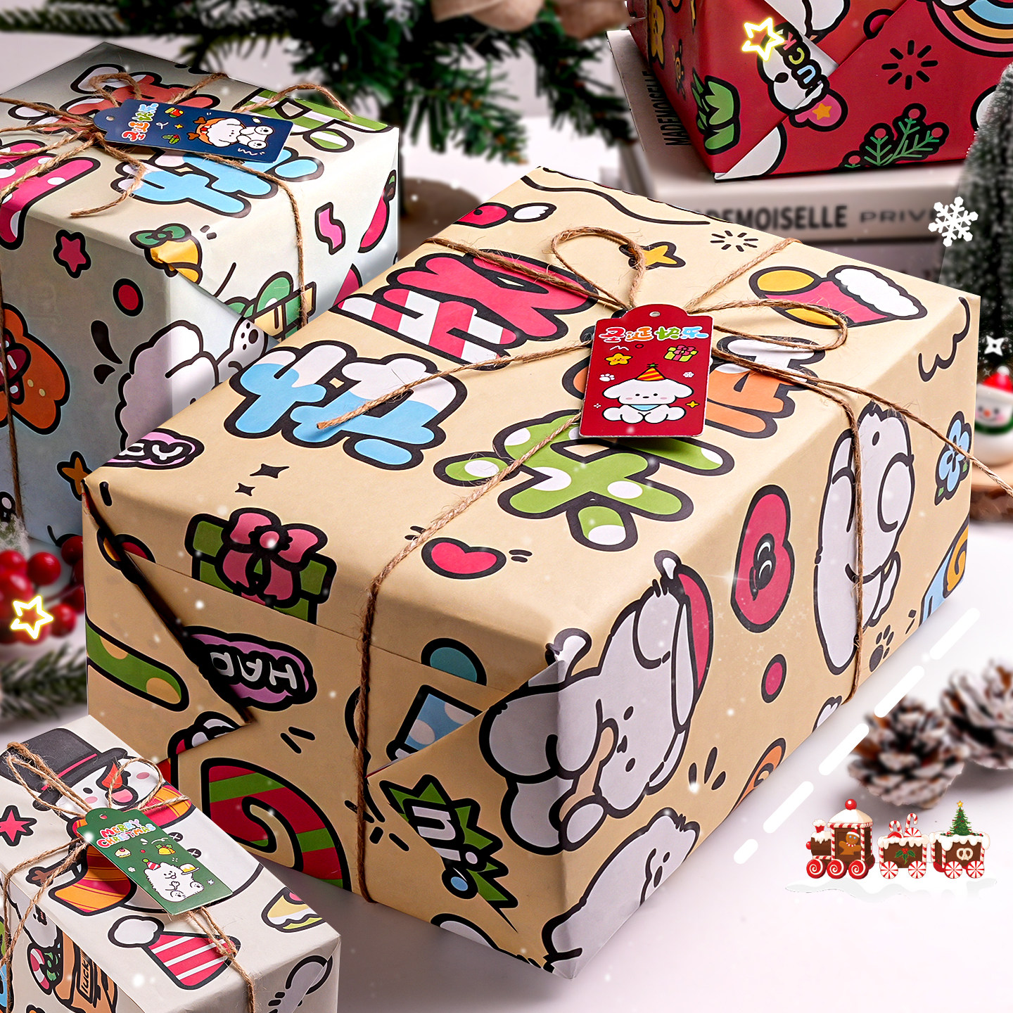 圣诞包装纸高级感礼品纸圣诞礼物礼盒大张打包纸圣诞节材料送男友送女友儿童加厚大尺寸可爱生日包装纸装饰E1