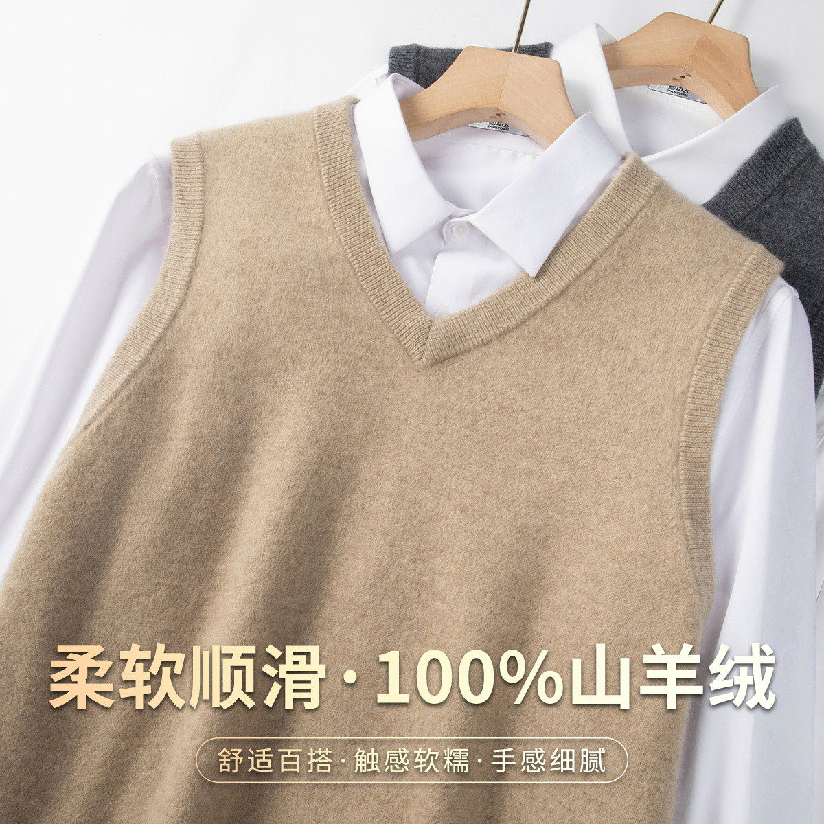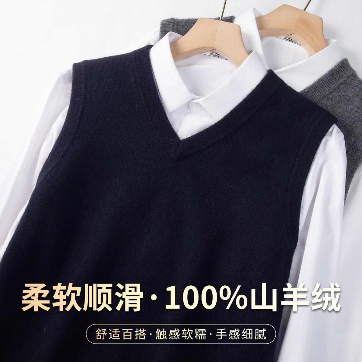 雪中飞 100%山羊绒V领男士羊绒背心基础内搭春季纯色叠穿马甲上衣