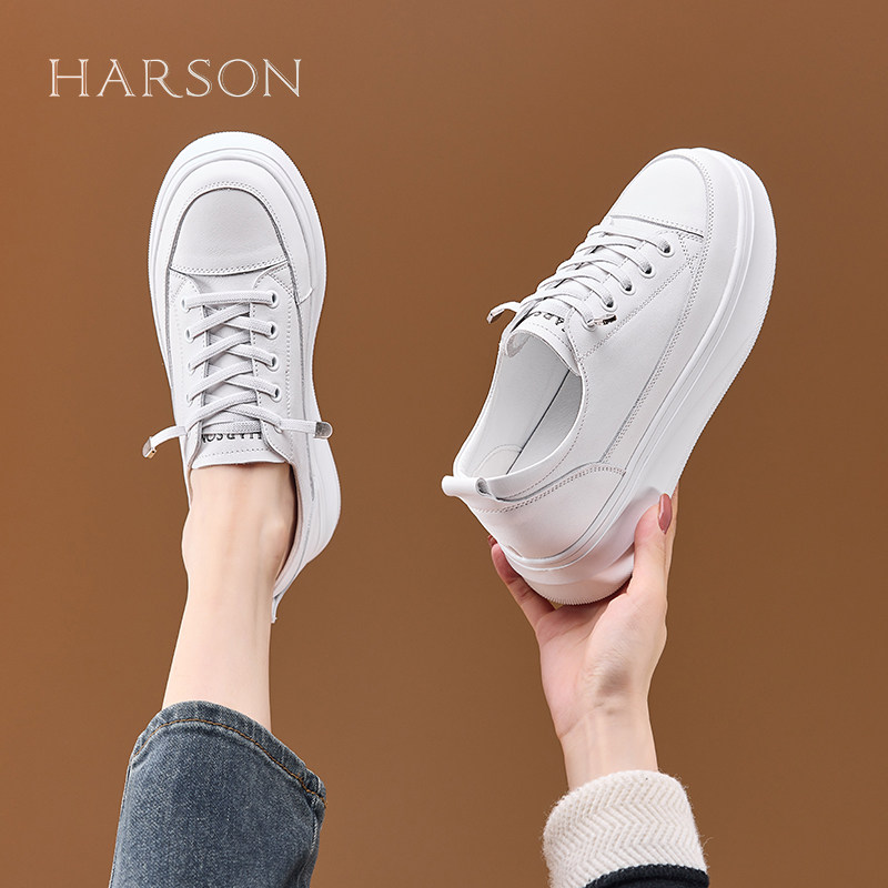 哈森真皮内增高鞋子厚底板鞋新款春季春款爆款休闲小白鞋女鞋