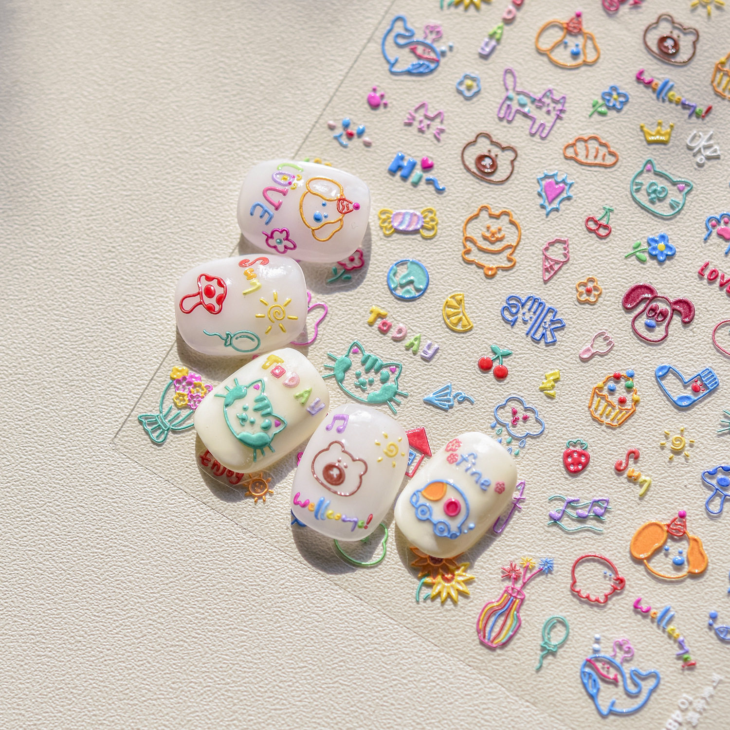 可爱涂鸦浮雕立体美甲贴纸笔记本电脑手机壳iPad指甲文具贴画迷你