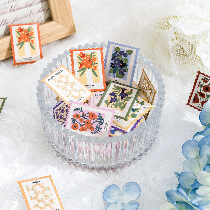 复古邮票盒装贴纸鲜花邮局植物花卉小图案手机壳手帐装饰素材贴画