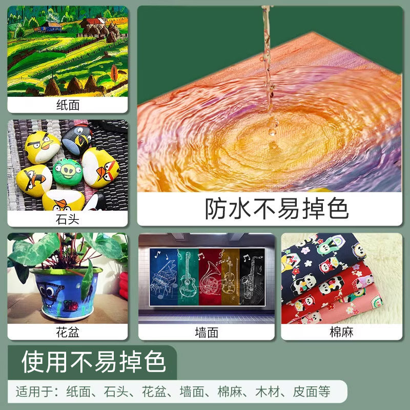 青竹丙烯颜料24色30ml无甲醛儿童果冻丙烯工具套装美术生专用不掉色防晒墙画染料学生绘画用套装小盒