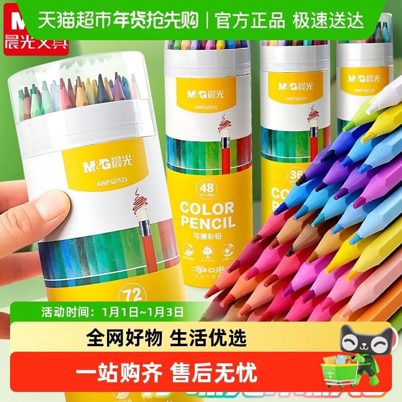 晨光彩色铅笔儿童绘画用可擦无木彩铅24色小学生画画多色不易断