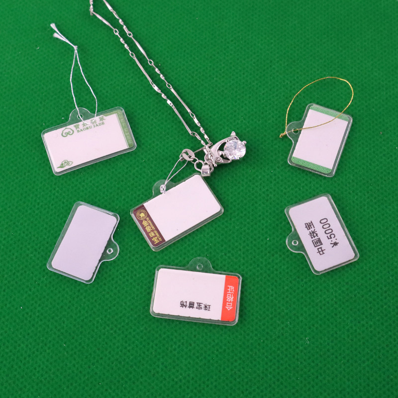 PVC向上带孔卡套玉器银饰贴纸价签纸穿孔吊牌纸保护珠宝标签套