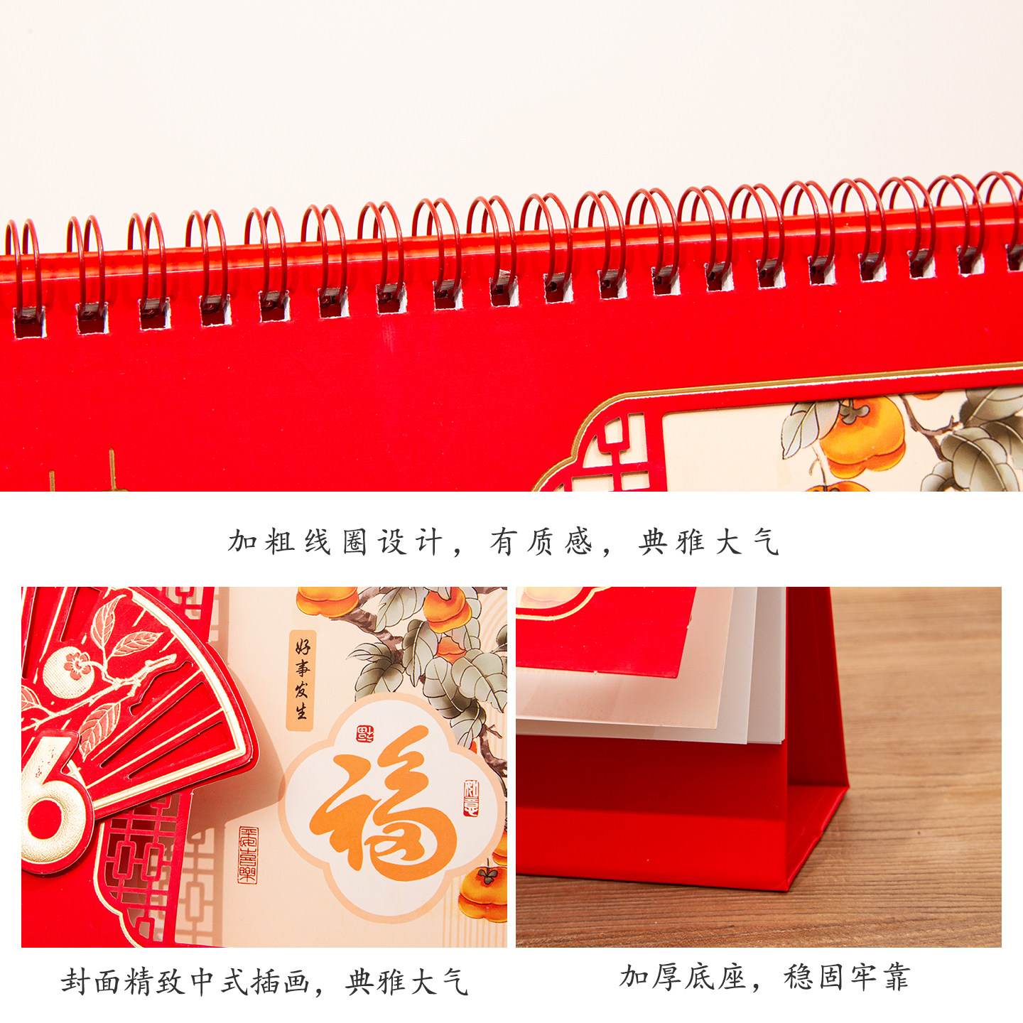 荧光红纸架立体扇子台历2026年新款定制logo公司企业商务马年简约日历本办公室桌面创意摆件横款日历月历批发