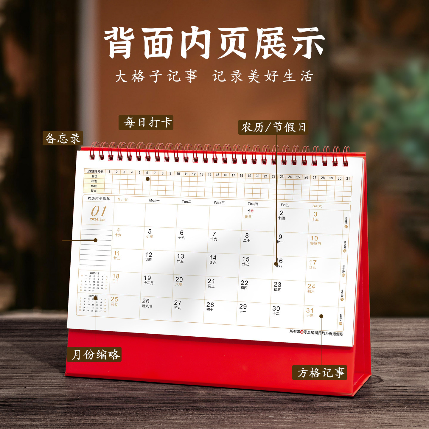 台历2026年新款创意简约办公桌面摆件月历办公室日程计划本高颜值年历马年工作打卡小日历创意大格子台式记事