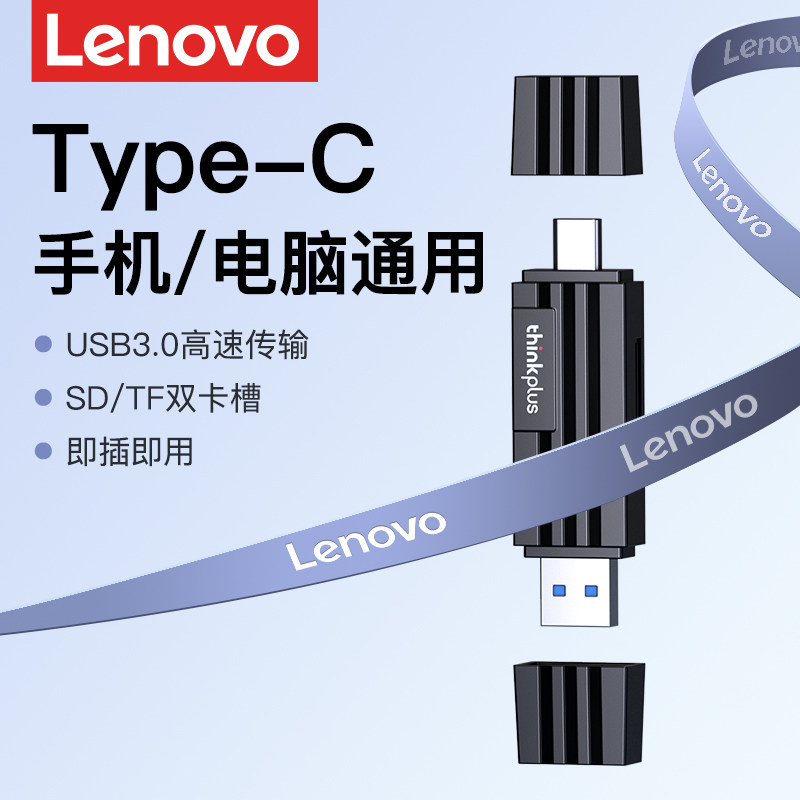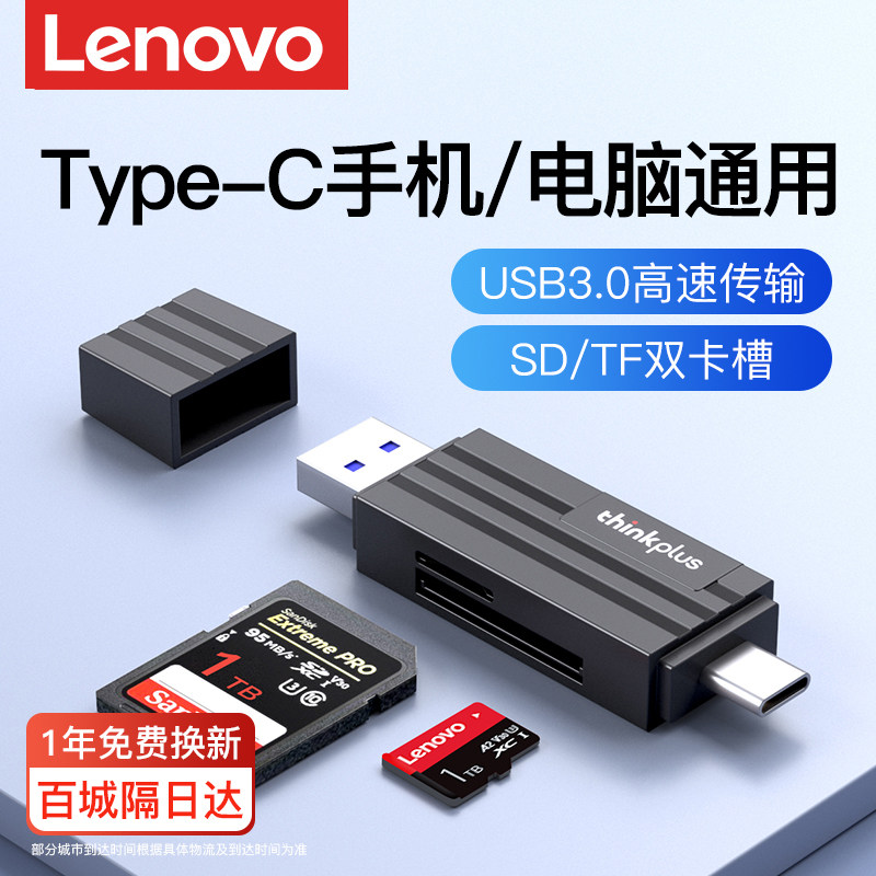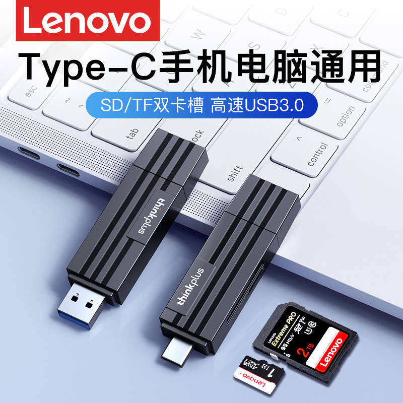 联想读卡器相机sd卡tf卡多功能usb3.0高速传输内存卡typec接口多合一通用行车记录仪适用华为苹果16手机电脑