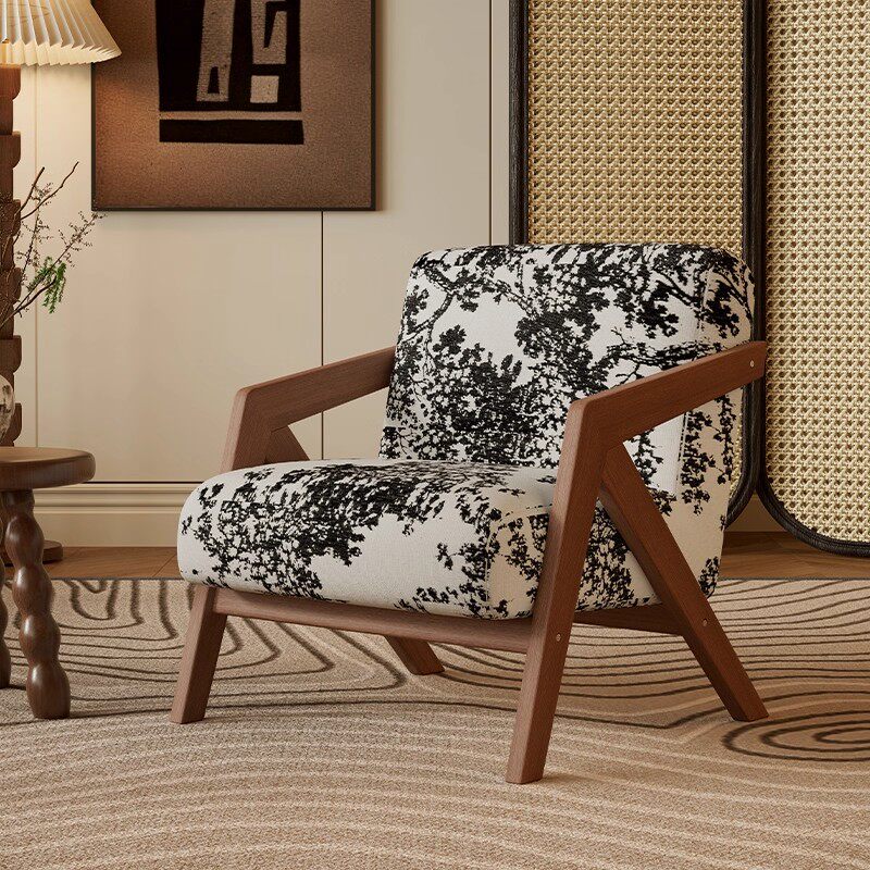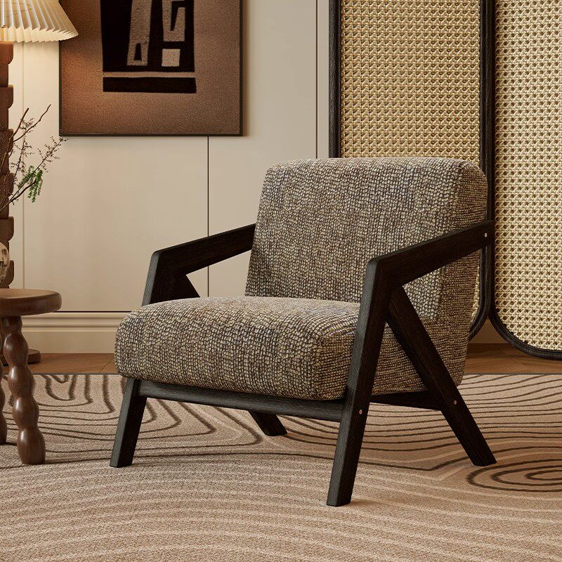 理查德椅单人沙发椅客厅复古实木阳台民宿侘寂ins中古风舒适黑色