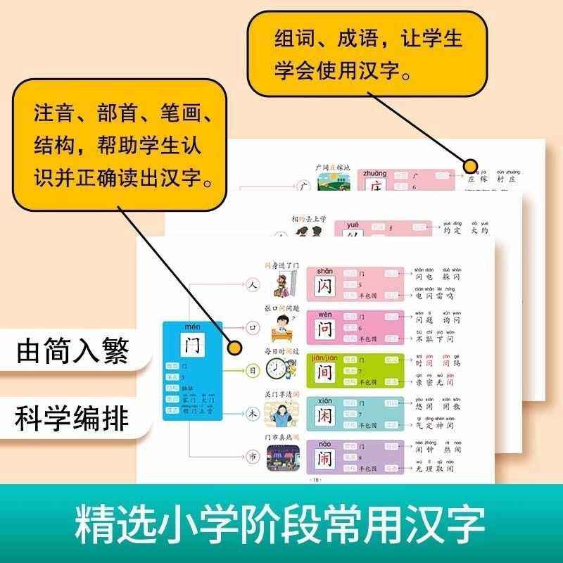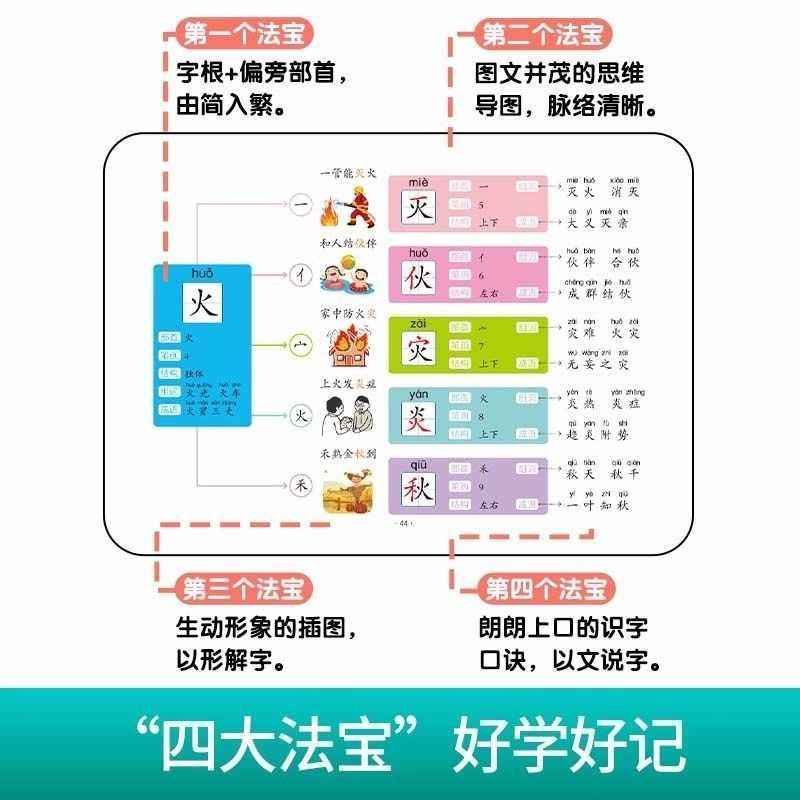 小学生思维导图速记汉字升级版识字幼儿启蒙认字卡片趣味认知轻松学习儿童神器人教版练习册语文生字预习突破记忆难关偏旁部首