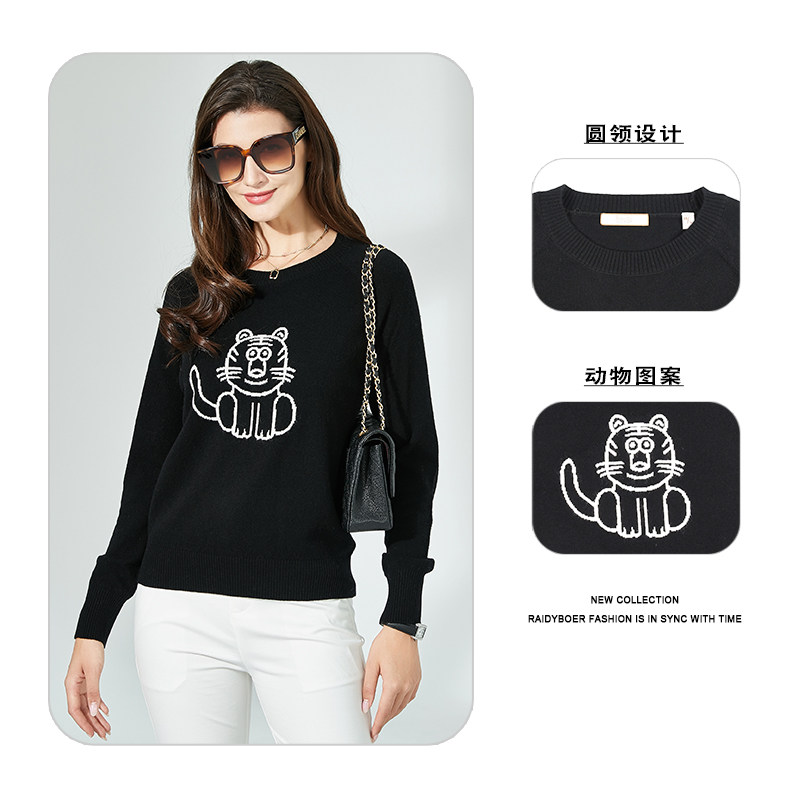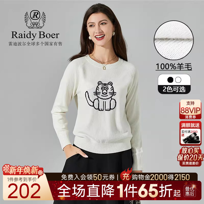 Raidy Boer/雷迪波尔秋冬新款时尚圆领纯羊毛女士针织毛衣5005