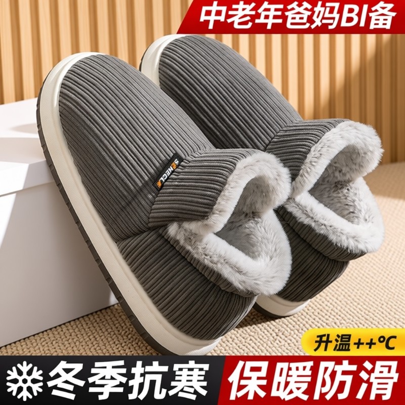 中老年棉拖鞋男款棉鞋女士冬季包跟防滑加绒保暖老年人雪地高帮